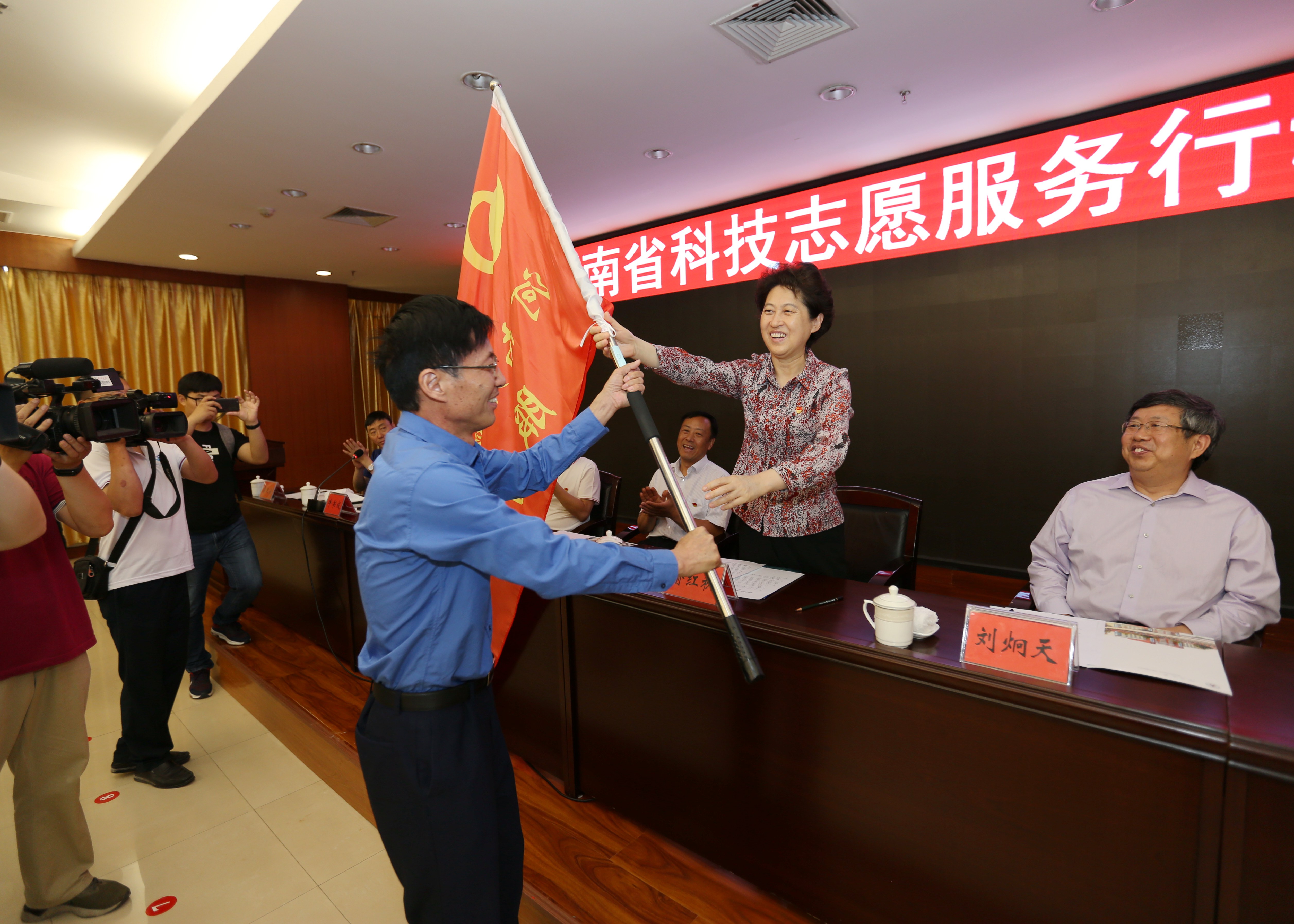 省委副书记、政法委书记喻红秋为河南省科技志愿者服务总队授旗