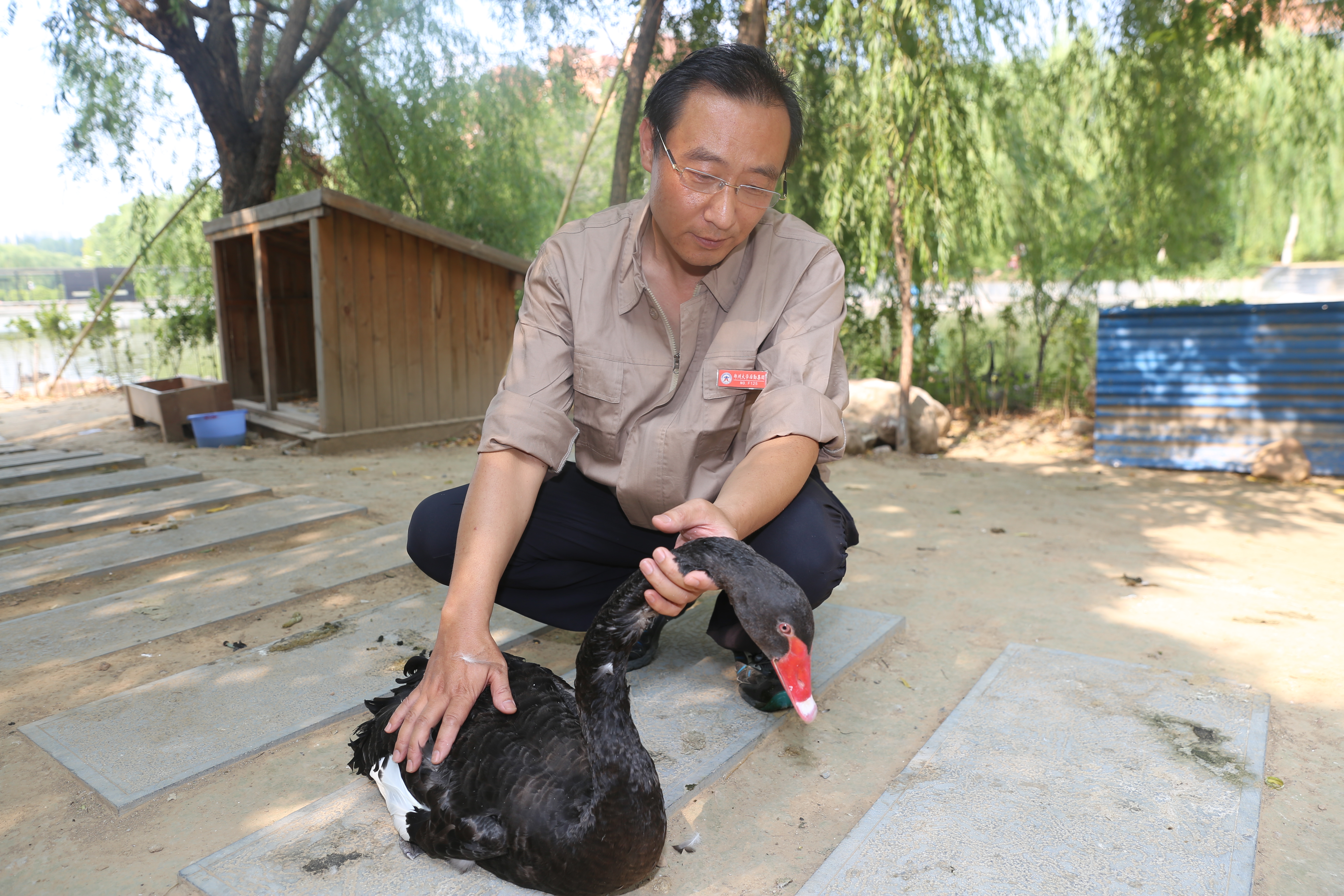 2015年以来,郑州大学先后接收来自兄弟院校、单位赠送的黑天鹅8只。为了照顾好这些小天使,张红伟积极学习相关知识,关注天鹅成长的每一个环节。张红伟曾跑遍了郑州周边的粮食采购点,只为寻找高质量的食料。在张红伟的不懈努力下,他们仅用2年时间就成功孵化小天鹅4窝,使新校区黑天鹅数量达到22只。