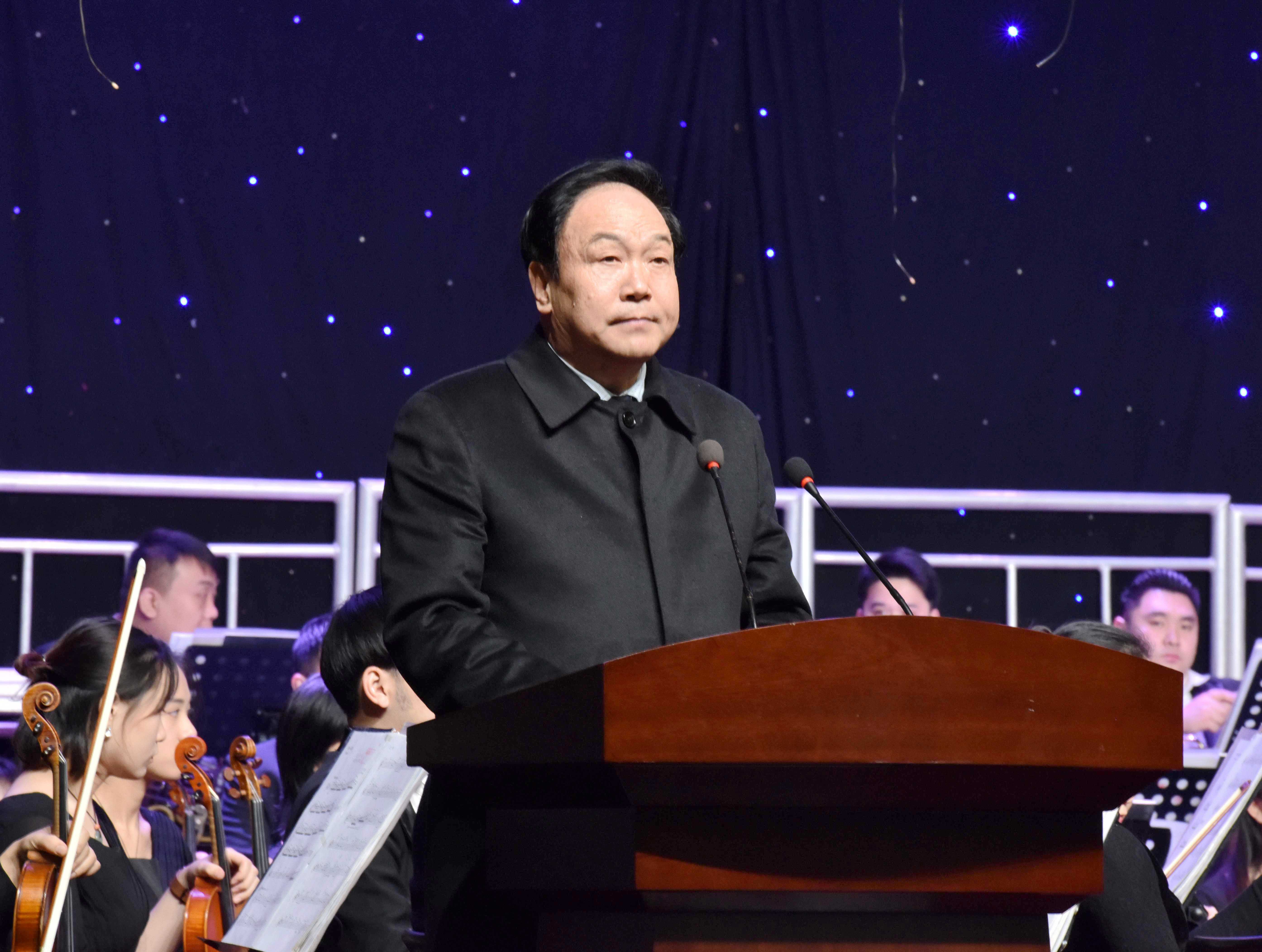 牛书成在致辞中对各位领导和嘉宾的到来表示欢迎,对参演的演职员们表示感谢,并向大家致以新年的问候。他指出,一流大学需要音乐和艺术的滋养,学校的精神文明建设离不开音乐和艺术的重要作用。学校将开展更多的高雅艺术进校园活动,进一步丰富广大师生的文化生活,让更多的师生近距离感受艺术的魅力、接受艺术的熏陶、提高艺术鉴赏力和综合素质,助推一流大学建设,为我省打造文化高地作出新的更大的贡献。