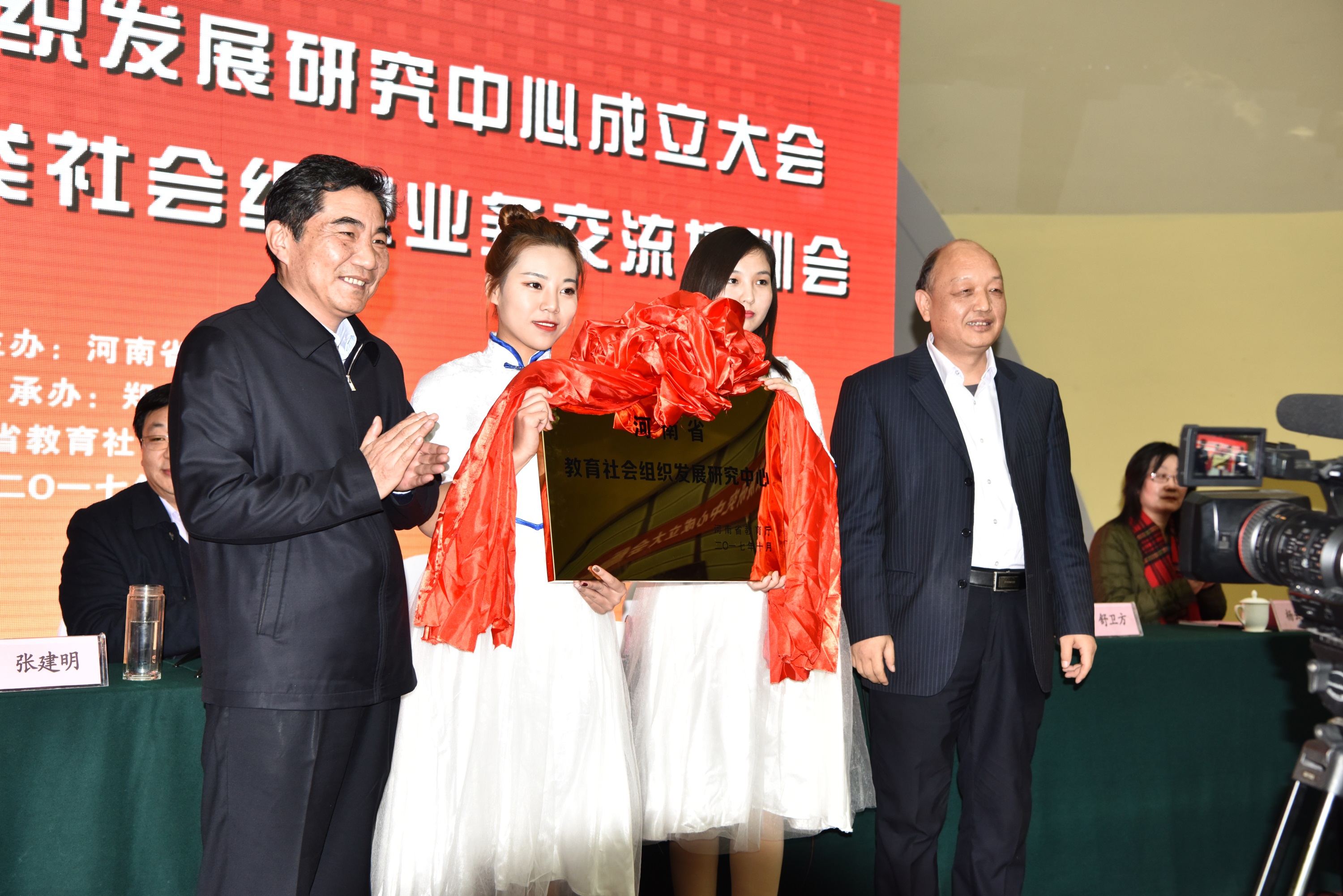 会上宣读了《河南省教育厅关于同意成立河南省教育社会组织发展研究中心的批复》和《郑州大学关于成立河南省教育社会组织发展研究中心的通知》。陈垠亭、许东升共同为“河南省教育社会组织发展研究中心”揭牌。