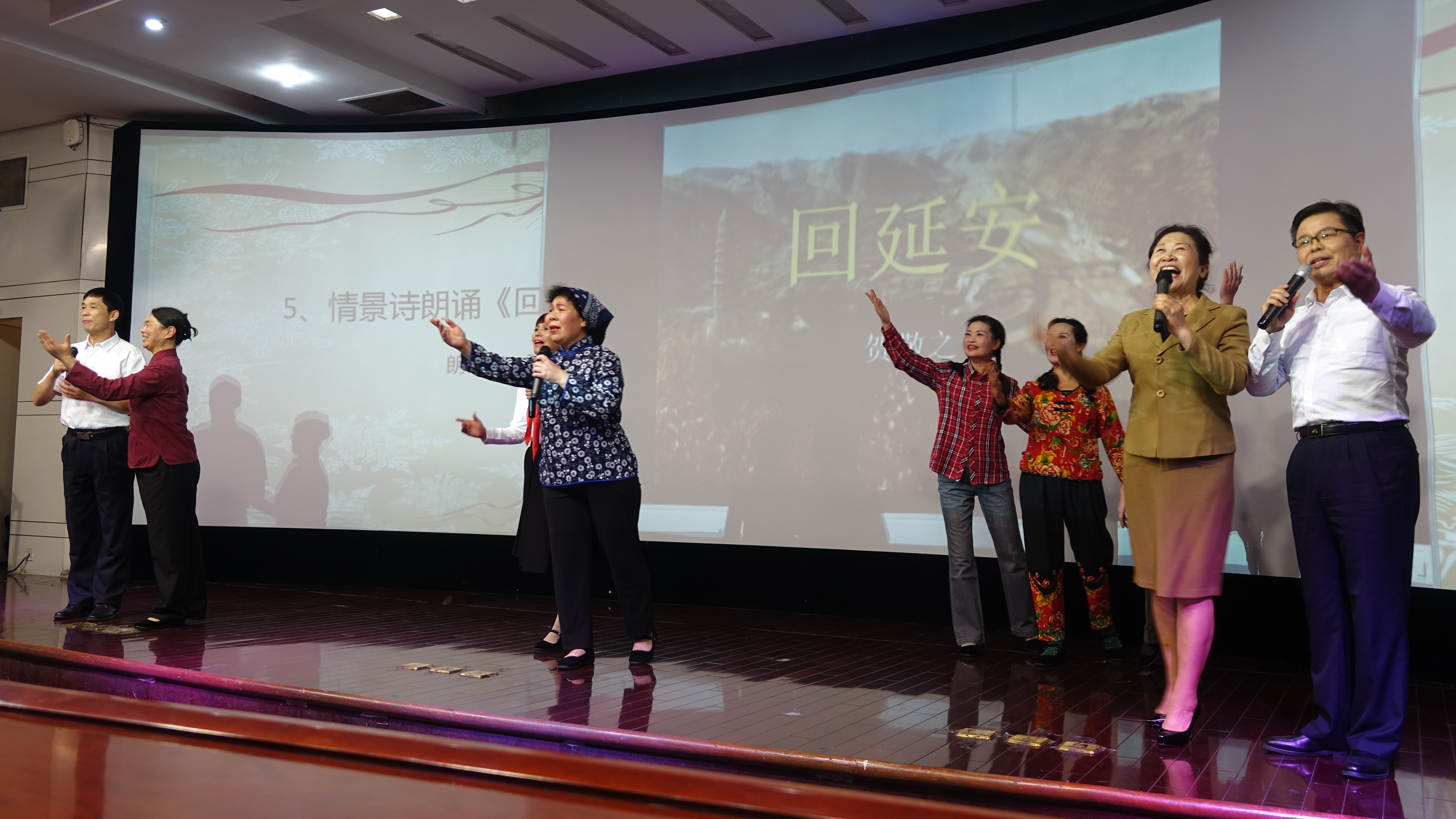 诗会开始前,女子国旗护卫队队列表演合唱《歌唱祖国》,“五星红旗迎风飘扬……”嘹亮的歌声配上她们整齐划一的动作,拉开了朗诵表演会的序幕。近两个小时的朗诵会上,表演者们为大家一一呈上了《回延安》《一首没有写完的诗》《丰碑》等17个精心编排的朗诵节目,在音乐的配合下,表演者们洪亮的声音、抑扬顿挫的语调与其间饱含的深情唤起了观众的强烈共鸣,现场不时响起阵阵掌声。