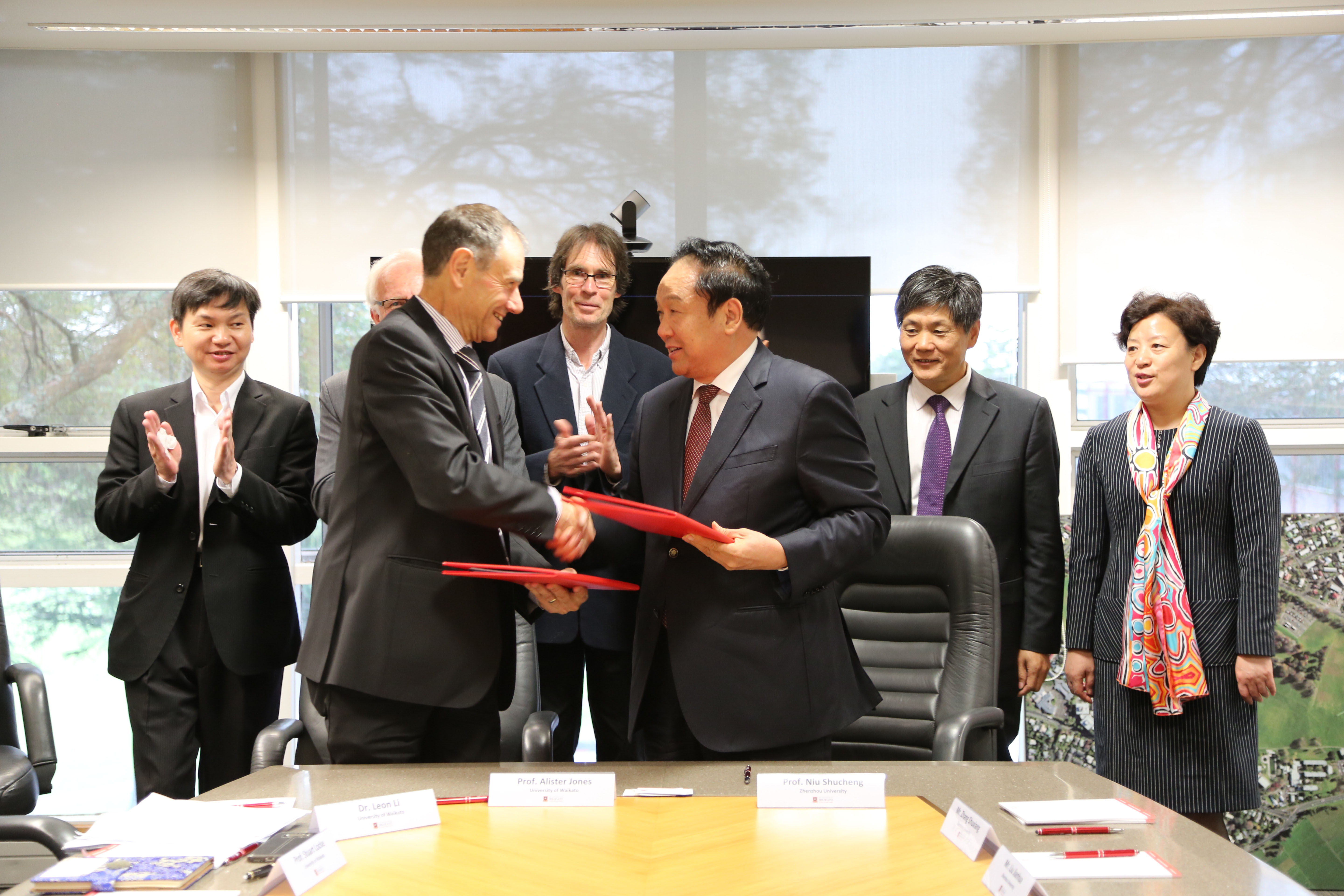 9月26日,牛书记一行访问新西兰怀卡托大学,受到该校资深常务副校长Alister Jones教授的热烈欢迎,双方签订了商科“3+1+1”合作协议。随后我校代表团还与怀卡托大学国际部部长Sharon Calvert女士、管理学院院长Tim Coltman教授等进行了两场会谈,就联合培养博士、共建金融国际化班、学生交流等事宜达成多项共识。