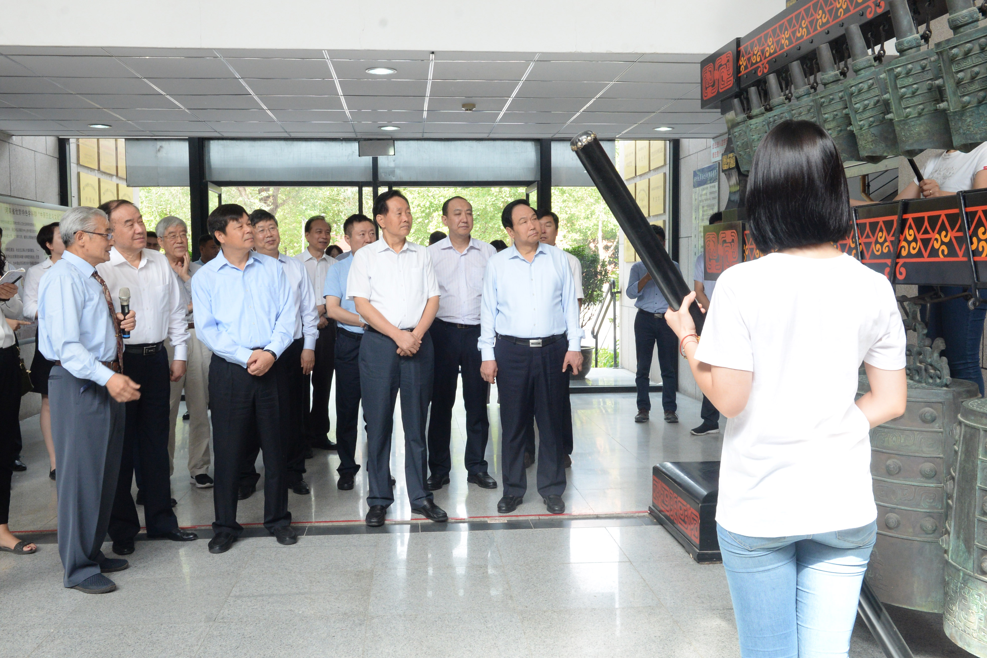 接着,杜占元副部长一行来到郑州大学中原历史与文化研究院。历史学院院长、中国社会科学院学部委员刘庆柱先生介绍了我校“中原历史与文化”学科,跟随刘庆柱先生的讲解,杜占元副部长一行参观了展现历史学科考古发掘和研究积淀的文物标本室,饶有兴致地了解每件展品所处时期的历史风貌,对我校在文化传承方面做出的努力和贡献表示肯定。
