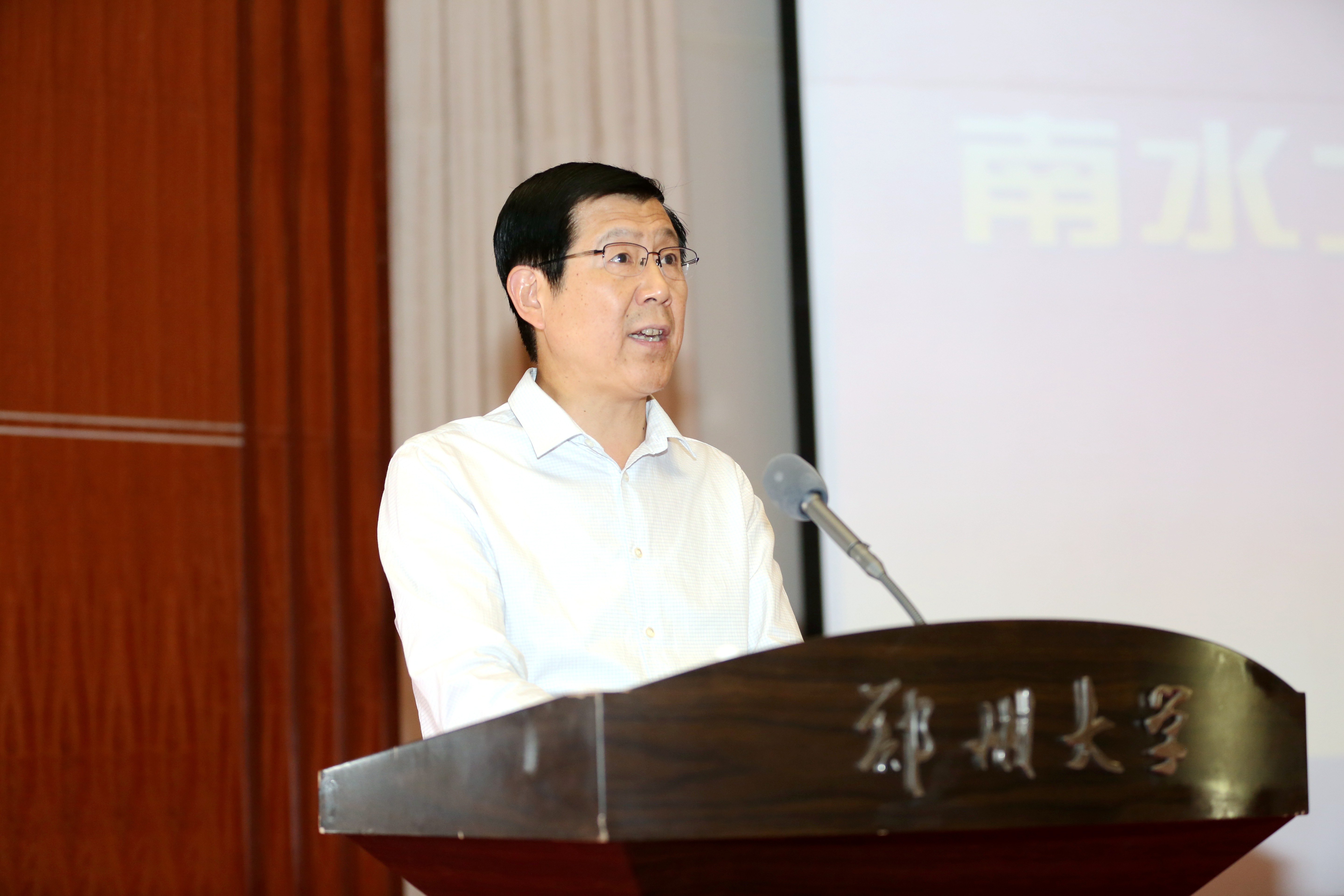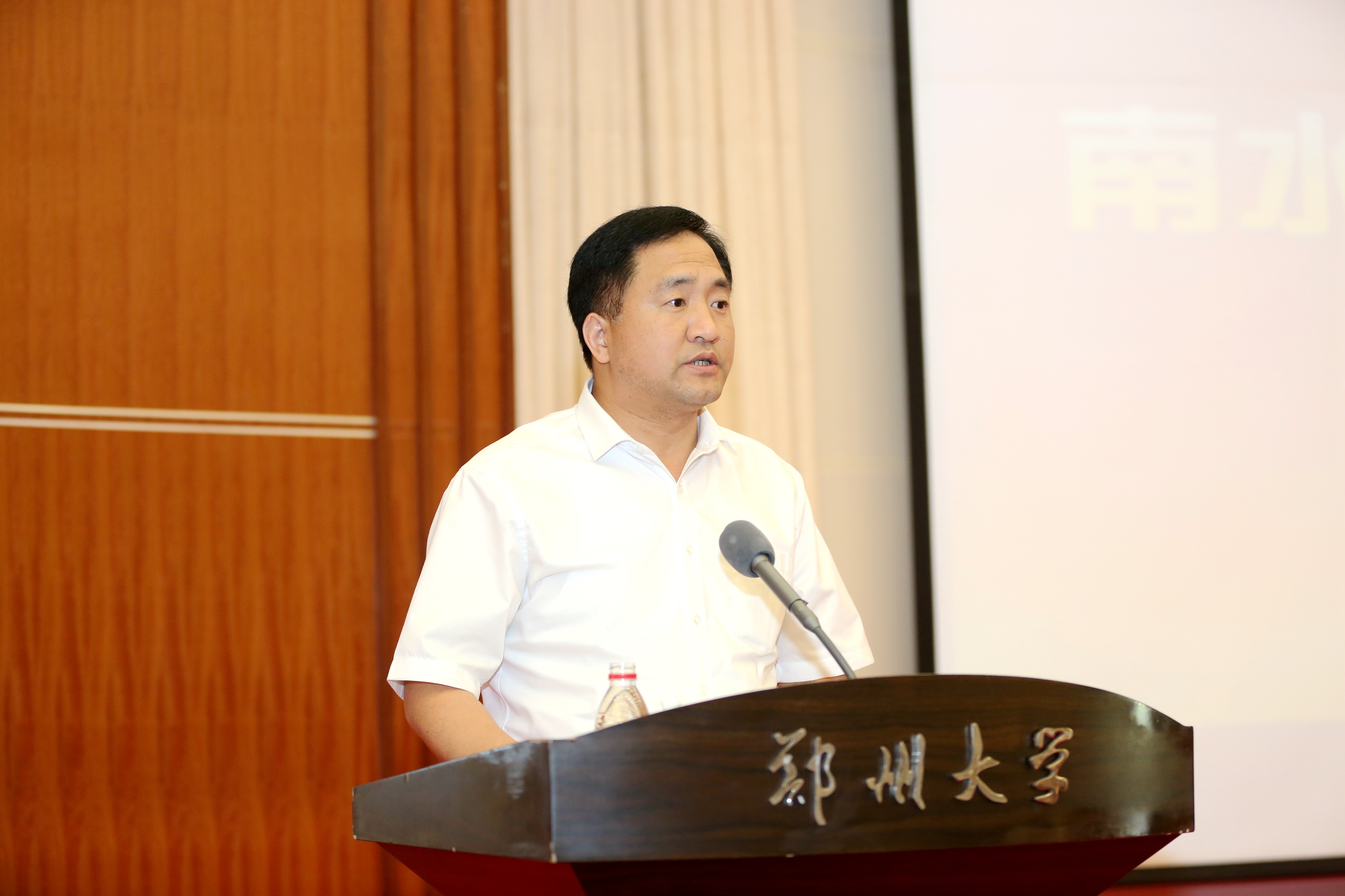 郑州大学党委书记牛书成在致辞中首先代表学校对报告团的到来表示热烈的欢迎,并致以崇高的敬意。在简要介绍了学校的基本情况和取得的突出成绩后,牛书记指出,伟大的南水北调移民精神,生动体现了以爱国主义为核心的民族精神和以改革创新为核心的时代精神;报告团亲临学校带来一场弘扬主旋律、传播正能量的报告会,为我们积极投身学校事业发展,提供了强大精神动力;我们要学习淅川人民舍己、爱国、大义、担当的精神,不断加强理想信念教育,积极培育和践行社会主义核心价值观,同心同德,团结奋进,为推进学校“双一流”建设作出新的更大的贡献。