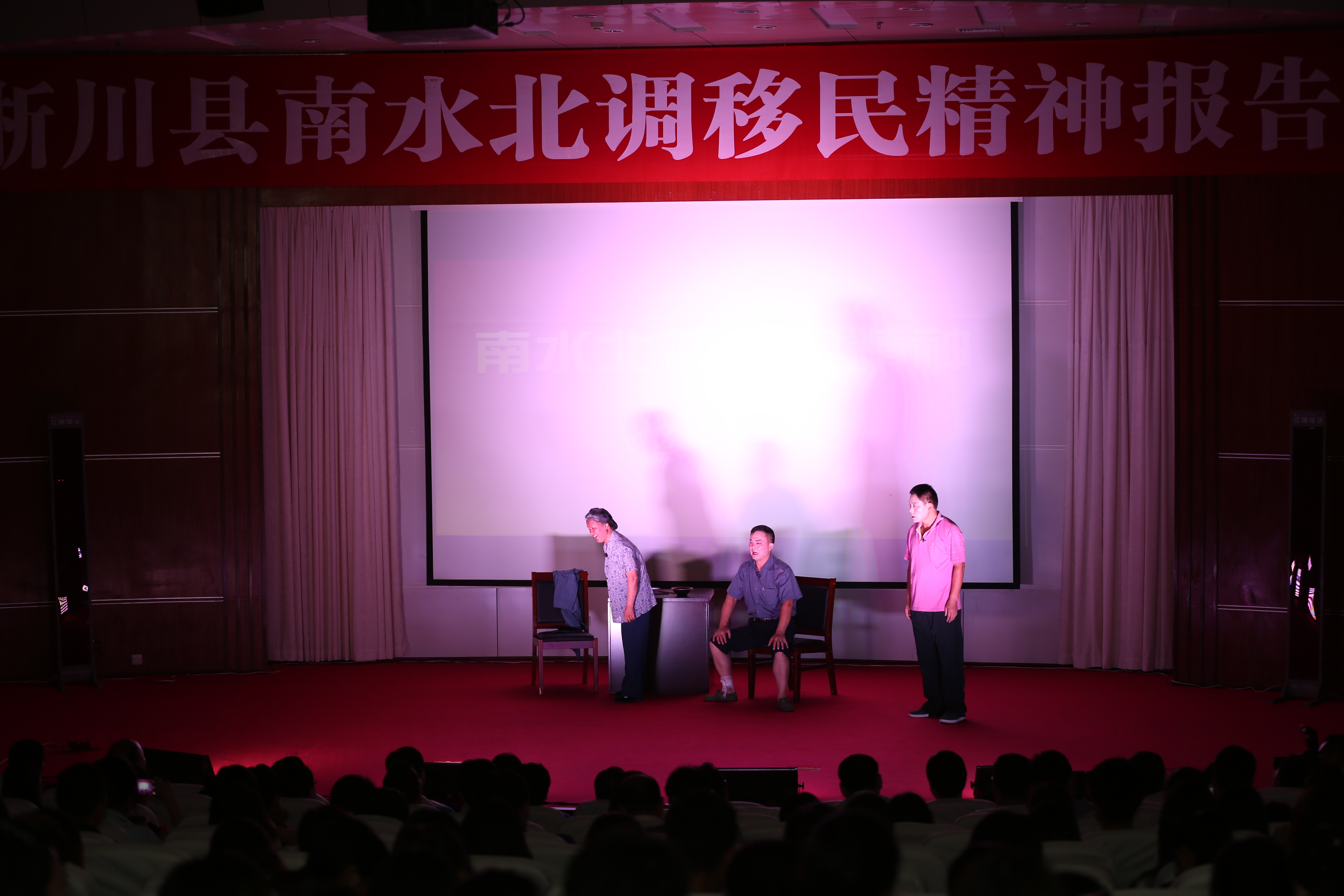 报告会结束后,移民精神报告团其他成员献上一台别开生面的情景剧《丹江夜雨》,艺术地再现了移民搬迁的波澜画卷。