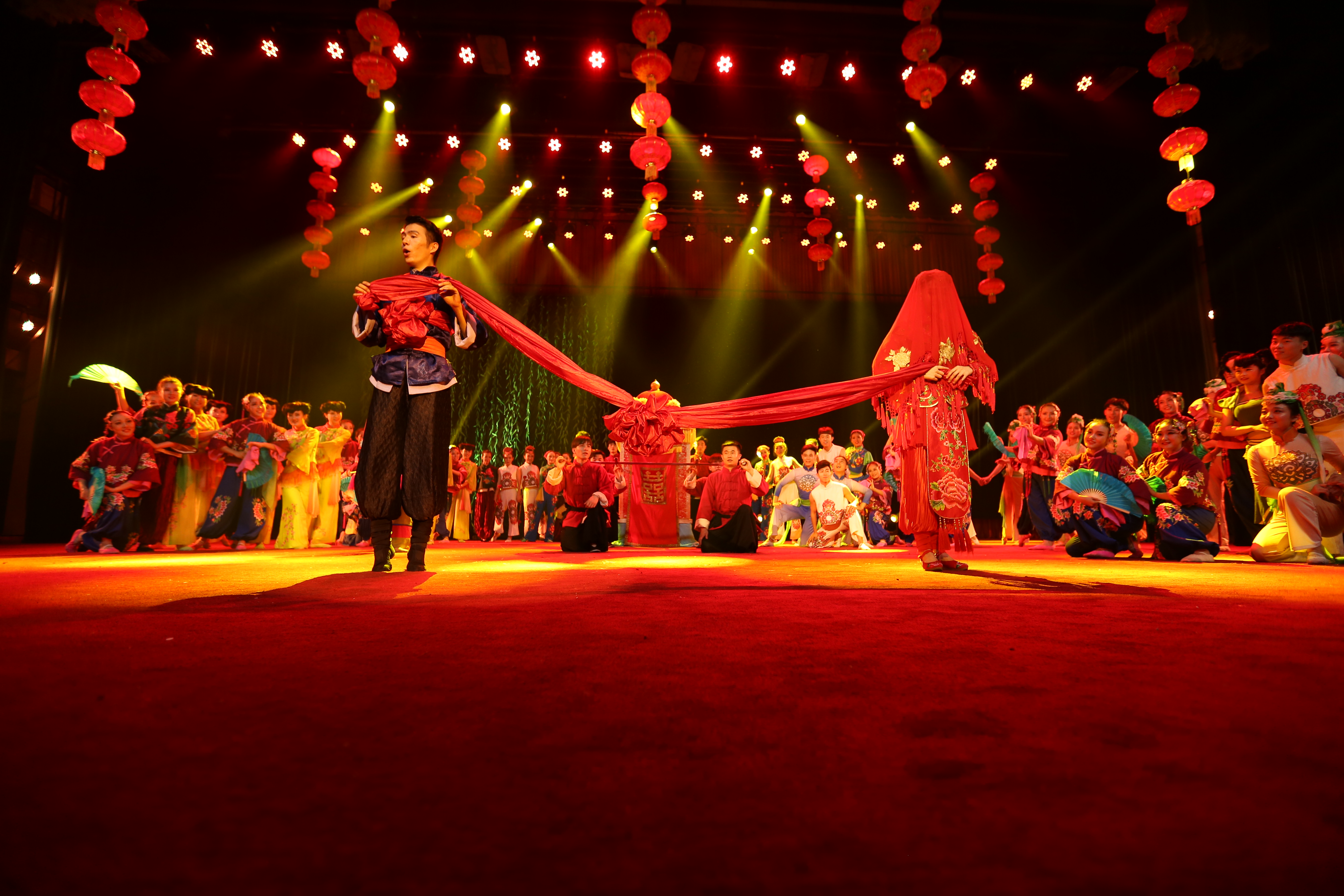 许昌学院音乐舞蹈学院学生先后表演了《霸王鞭》、《游春》、《打春牛》、《摘棉花》、《花挑》、《劝闺女》、《抬花轿》等精彩生动的舞蹈节目。《霸王鞭》中的演员伴随着铿锵有力的鼓点,将霸王鞭的刚硬与身体的柔美相结合,舞出了一套活力四射的舞蹈动作。《花挑》是将信阳固始县的传统民间艺术花挑舞进行再创作,展现了民间艺术与现代舞蹈的创新融合,令人耳目一新。压轴舞蹈《抬花轿》将民间抬花轿舞蹈和河南秧歌融合在一起,两个主要舞蹈演员用出色的表演和完美的配合赢得了现场观众的一片掌声,现场气氛达到高潮。