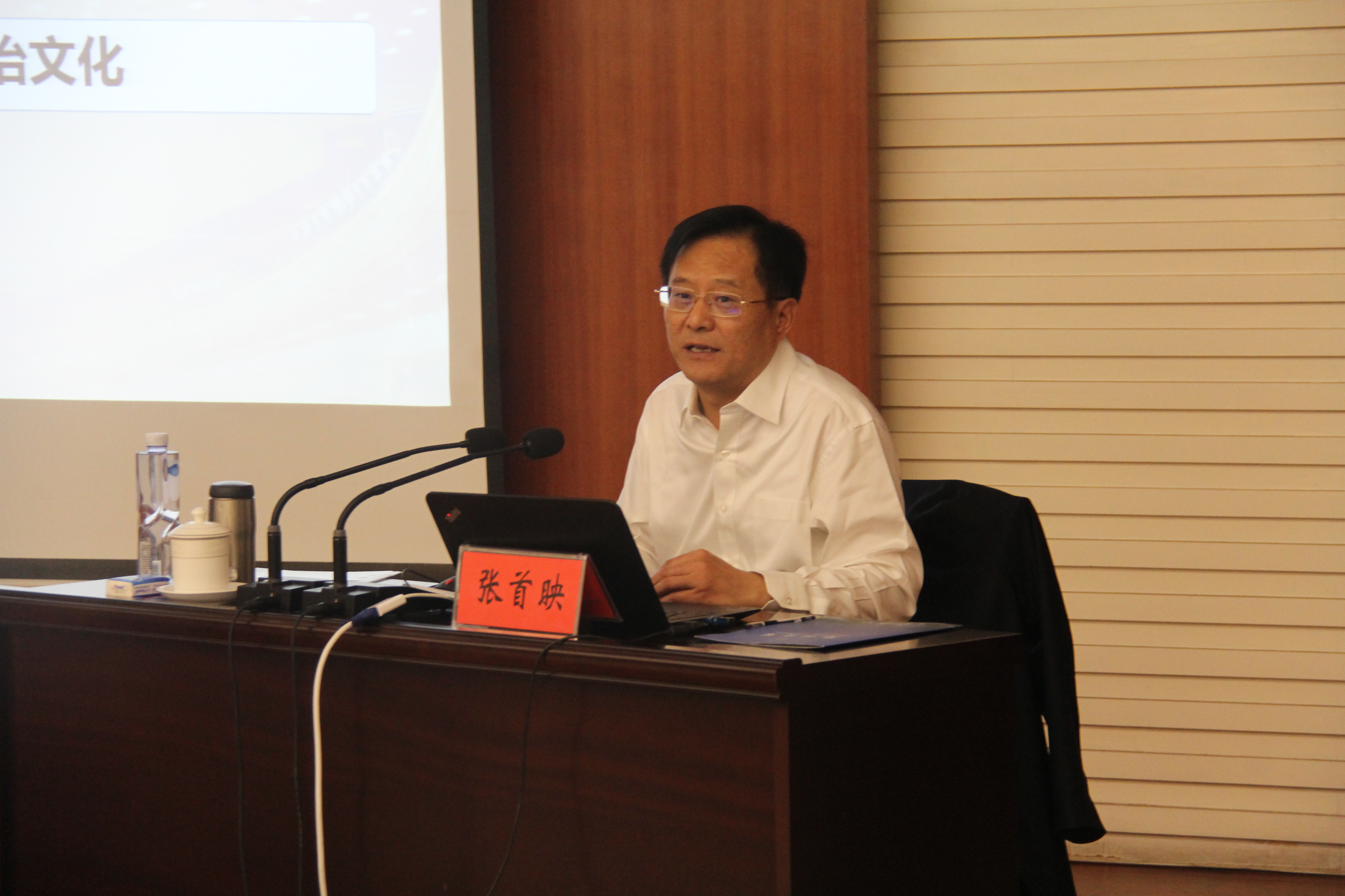 报告会上,张首映主任以政治生活、政治生态、政治文化三者的关系为切入点,从什么是政治文化、为什么要积极构建优秀的政治文化以及积极构建什么样的优秀政治文化三个方面进行系统阐述。张首映主任指出,政治文化是一种讲政治、讲信念、讲组织、讲实践、讲效能的精神文化。政治文化具有塑造和培育人的作用;具有持续发展的推动作用;具有制约的作用;具有凝心聚力的作用。张首映主任认为,优秀的政治文化以思想理论为根,以信仰为真,以宗旨为善,以理想为美,以严实为行为方式。