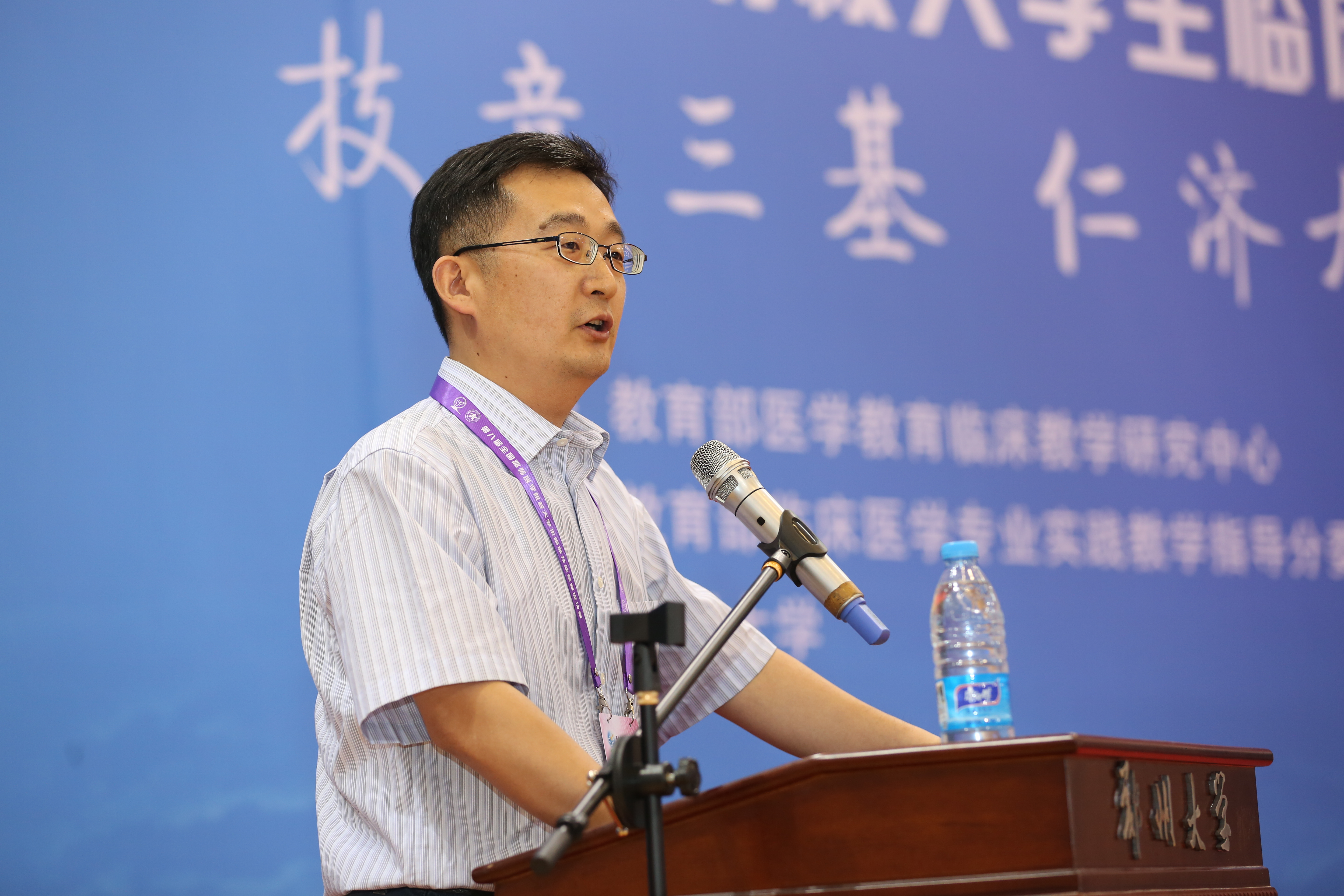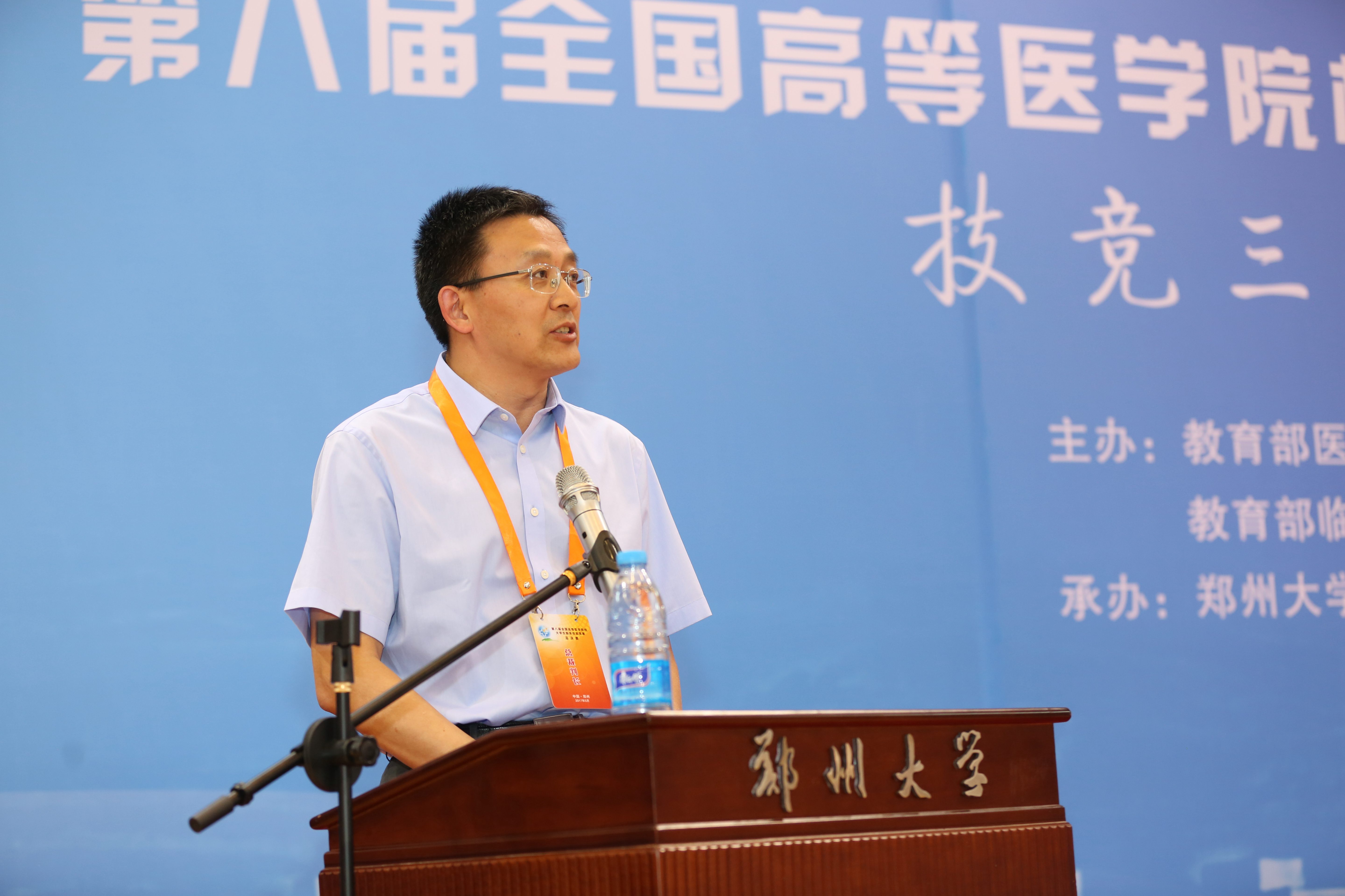 教育部高教司农林医药处副处长高斌讲话。他强调,各医学院校应以此次大赛为抓手,把临床技能培训纳入课程体系中,进一步扩大参赛选手的覆盖面,培养学生临床能力,推进临床技能改革。他希望,参赛的医学生继续发扬本届比赛的拼搏精神,努力成为优秀的医务工作者,为健康中国的建设作出贡献。