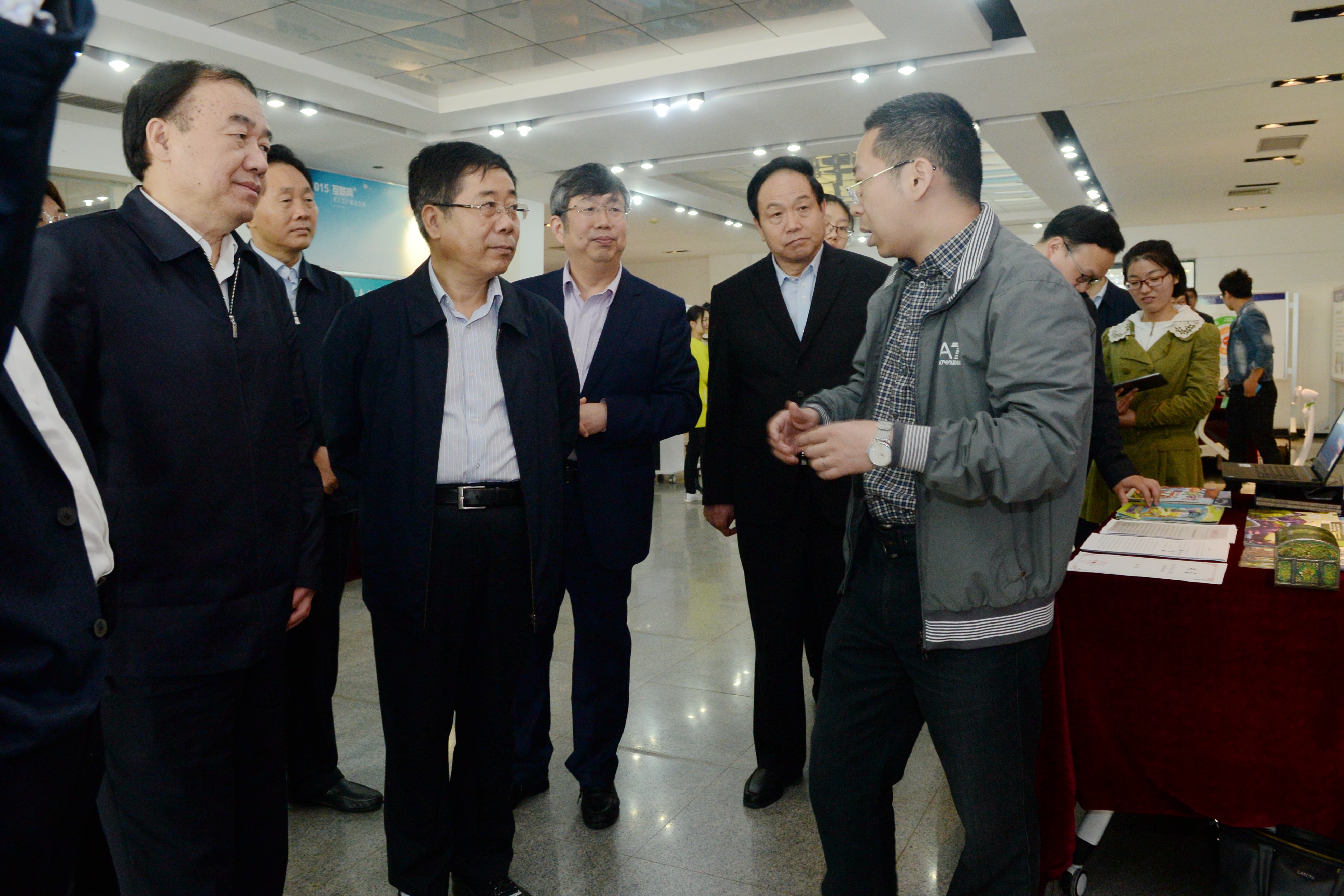 在大学科技园成果展区,陈宝生部长听取了相关负责同志的介绍,对我校机械与工程学院学子在国际工业设计大赛获奖的事迹表示肯定。在产业技术研究院展示区,陈宝生部长听取了林予松副教授、万红教授和徐明亮副教授分别就互联网医疗与健康服务、脑科学与脑机接口重点实验室和信息技术交叉研究所等电气信息学科产业化方面的成果介绍,对他们所取得的创新成果表示赞许。