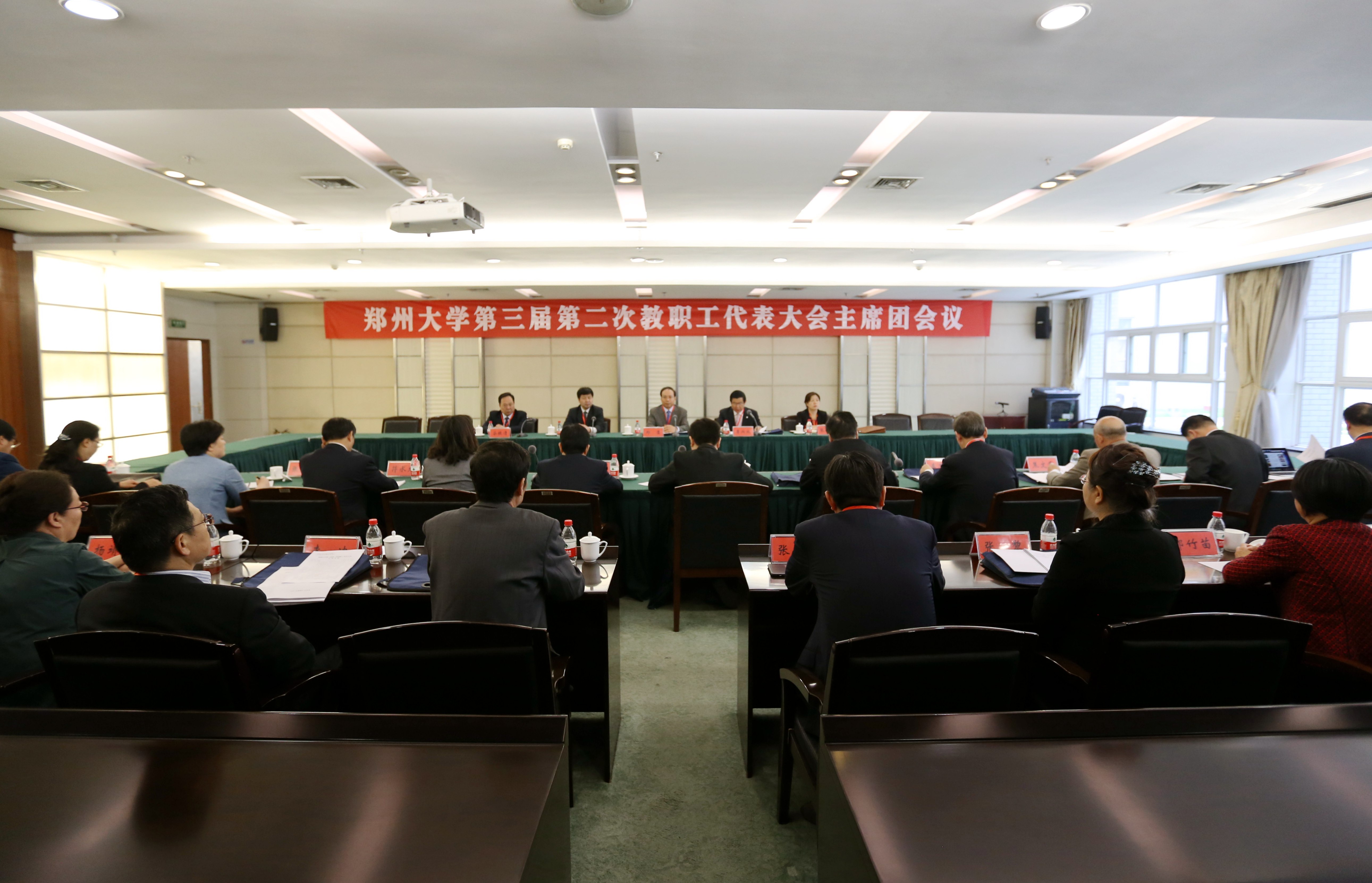 4月27日,郑州大学第三届第二次教职工代表大会在校综合管理中心第一报告厅举行。校领导牛书成、刘炯天、邢莹、李兴成、宋毛平、王宗敏、张倩红、刘国际、谷振清、韩国河、许东升出席会议,大会代表和列席代表共300余人参加会议,校党委副书记、工会主席李兴成主持会议。