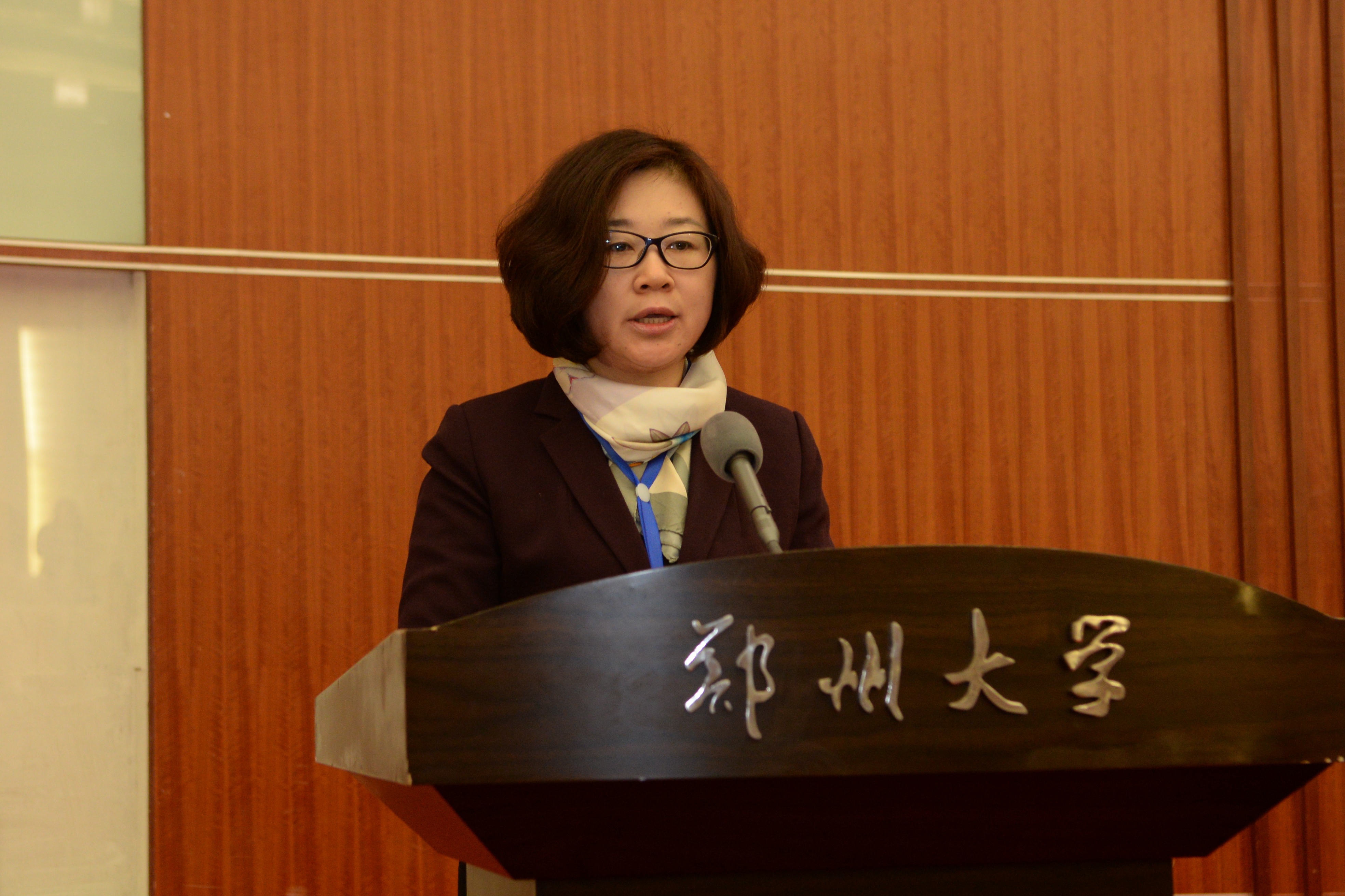 省科协主席霍金花、洛阳师范学院院长梁留科和郑州大学副校长刘国际传递会旗