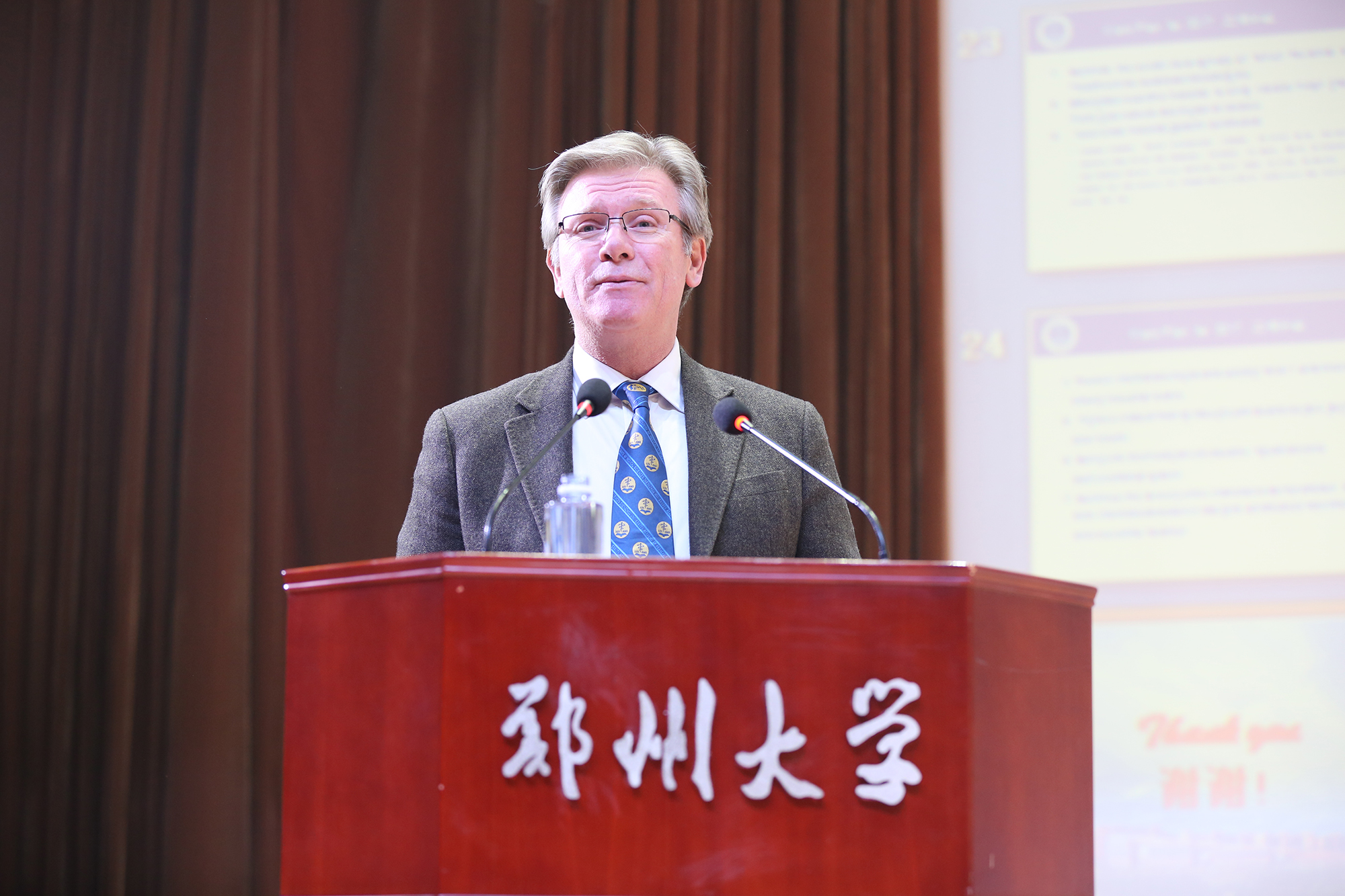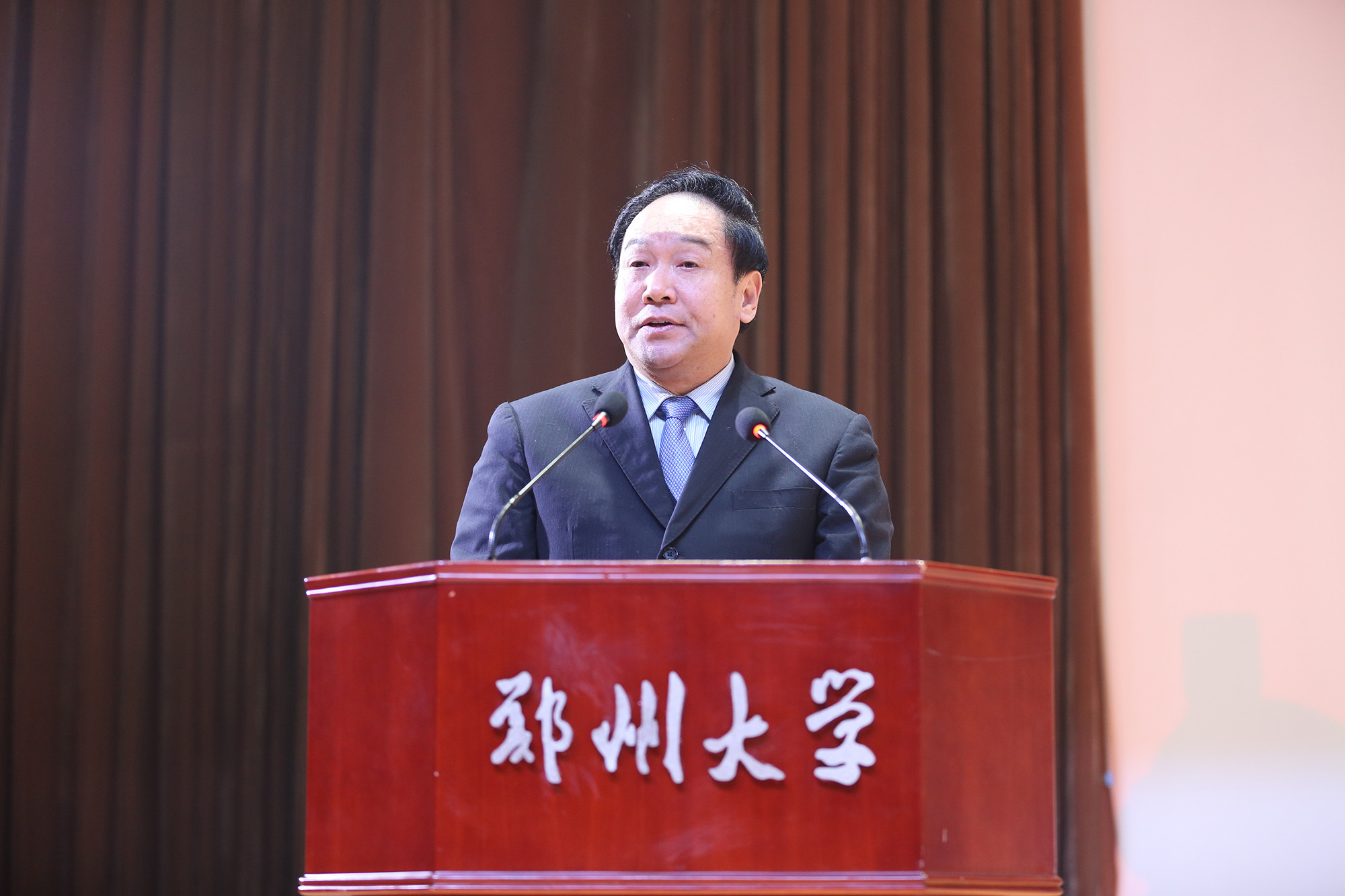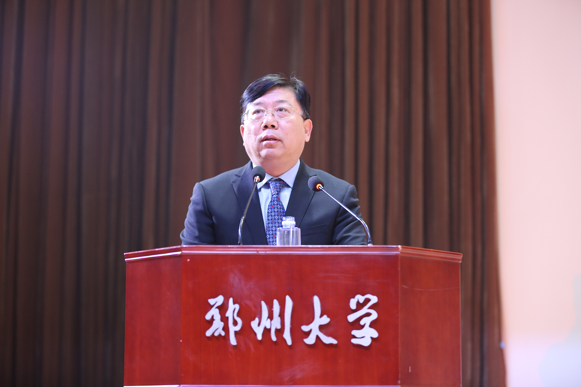 校党委书记牛书成致辞。牛书记对国家外国专家局、河南省政府以及有关部门一直以来对学校的关心支持表示衷心感谢,并简要介绍了郑州大学的国际化工作和医学科学院的建设情况。牛书记指出,为确保国际化示范学院试点工作的全面推进,学校将严格按照国家外专局的要求,全力支持医学科学院的发展,在政策、资金以及资源配置等方面给予倾斜和支持,给予医学科学院在人事、财务、教学、科研、管理等方面的自主权限,在医学科学院设立国际化“人才特区”等,同时在科研平台、资源投入等方面提供有力支撑,在管理和服务方面做好保障。牛书记表示,学校将以成功入选“国际化示范学院推进计划”为契机,进一步建立健全与国际接轨的医学科研创新体系、人才培养体系和管理运行机制,率先实现医科的国际化。同时,发挥医学科学院的示范引领作用,进一步打造海外高端引智平台,提高人才队伍国际化水平,为学校在人才培养、科学研究、管理体制机制等方面的改革发展,探索新路径,提供新经验,引领和带动学校国际化水平的不断提升,助推学校早日建成一流大学。
