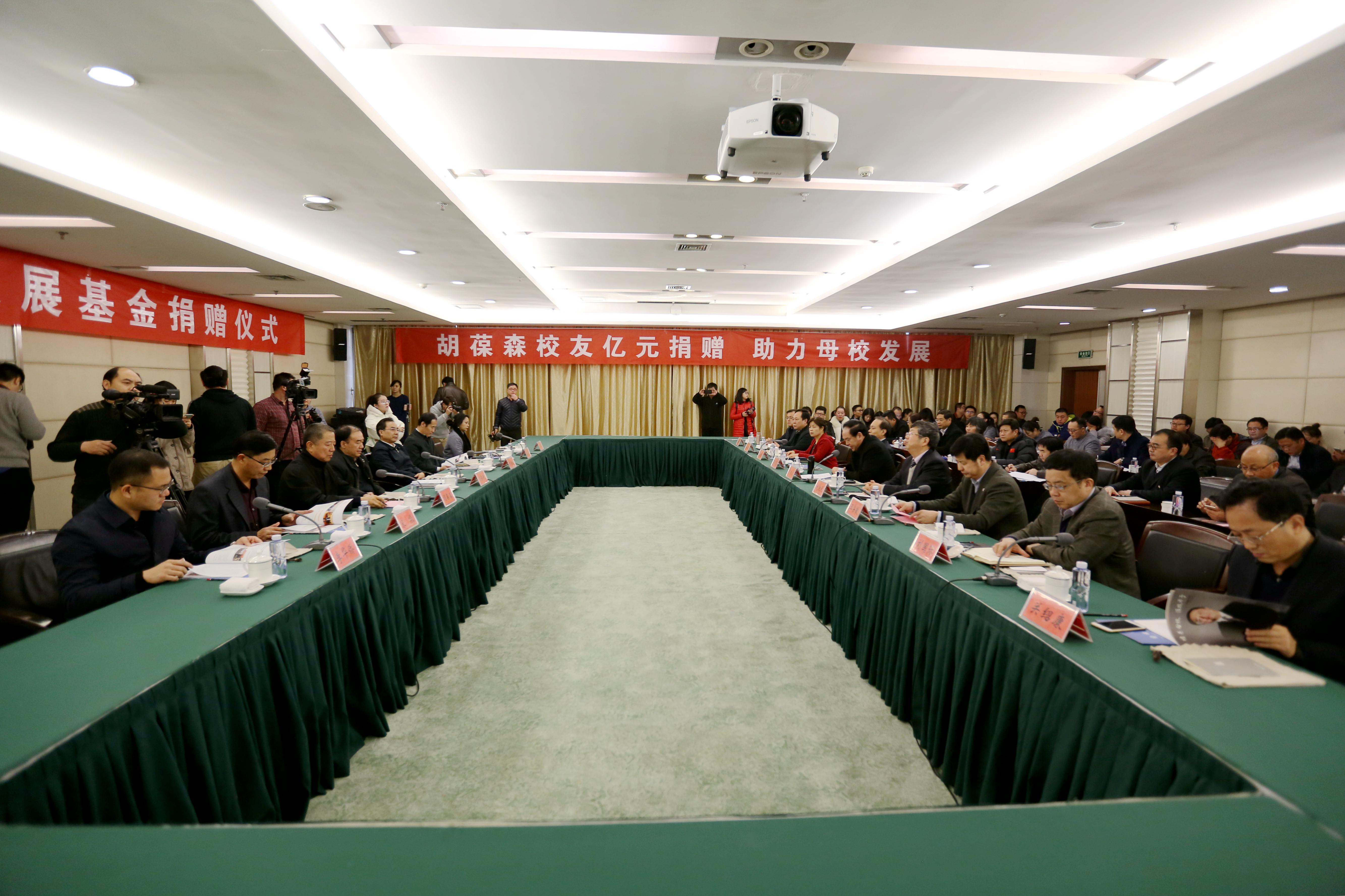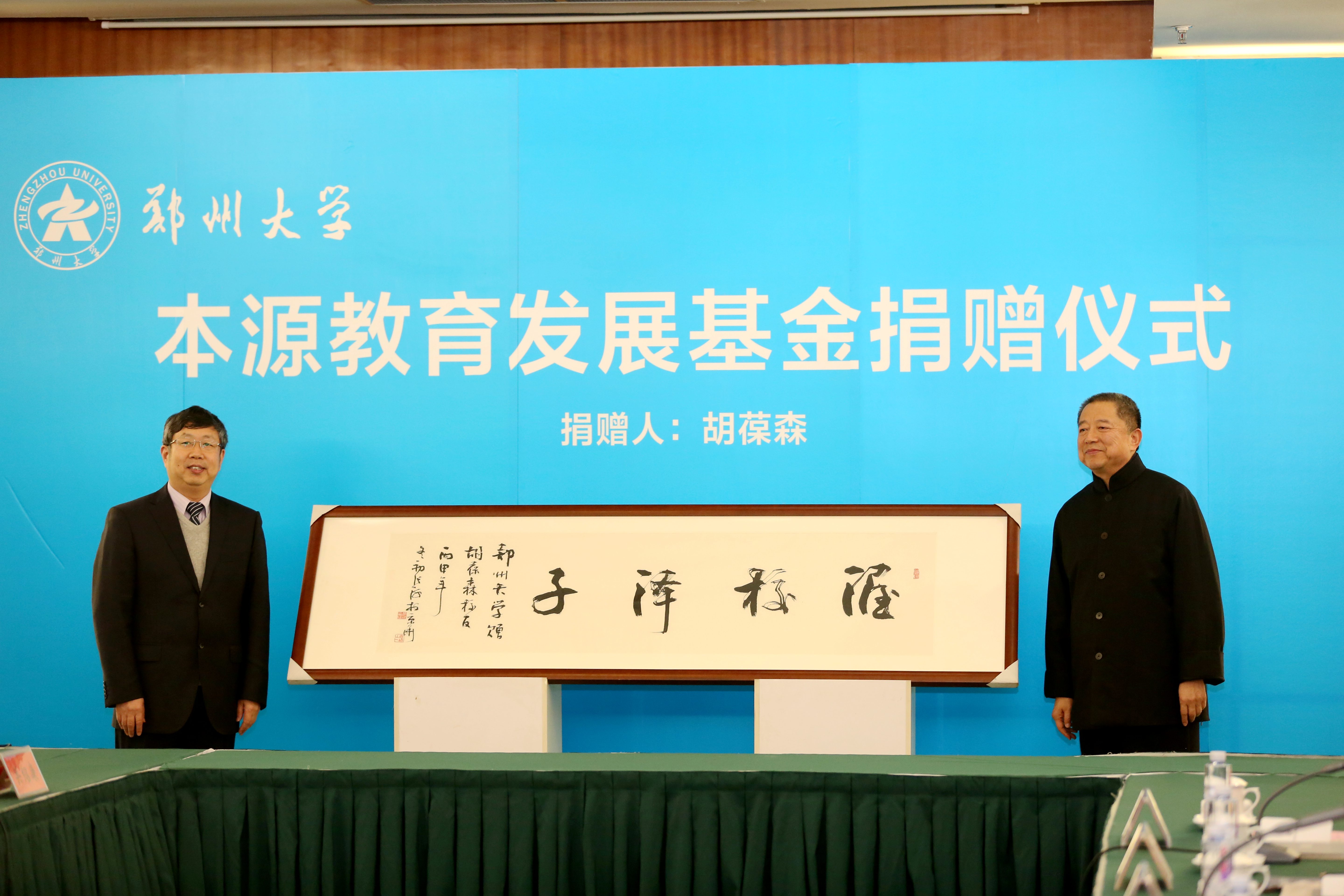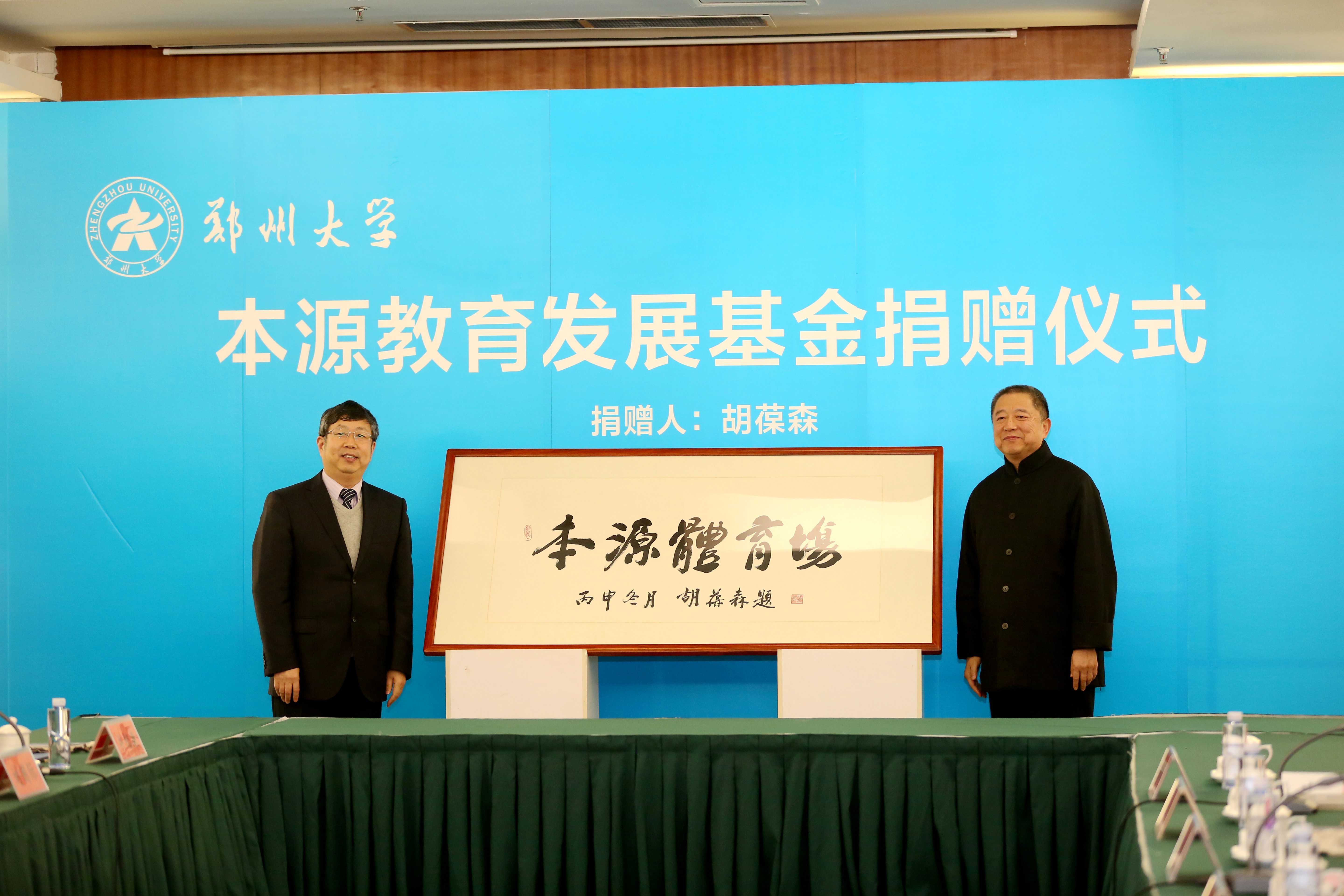 12月23日,郑州大学举行本源教育发展基金捐赠仪式,1976级校友、建业集团董事长、河南省本源人文公益基金会创始人胡葆森先生向学校捐赠1亿元人民币,设立“本源教育发展基金”,支持母校人才培养及发展荷球体育运动。河南省副省长徐济超,河南省教育厅副厅长尹洪斌,校领导牛书成、刘炯天、邢莹、王宗敏、张倩红、刘国际、谷振清、关绍康、韩国河出席。省政府办公厅、省教育厅和学校相关部门和单位负责同志及师生代表参加了捐赠仪式。仪式由副校长王宗敏主持。