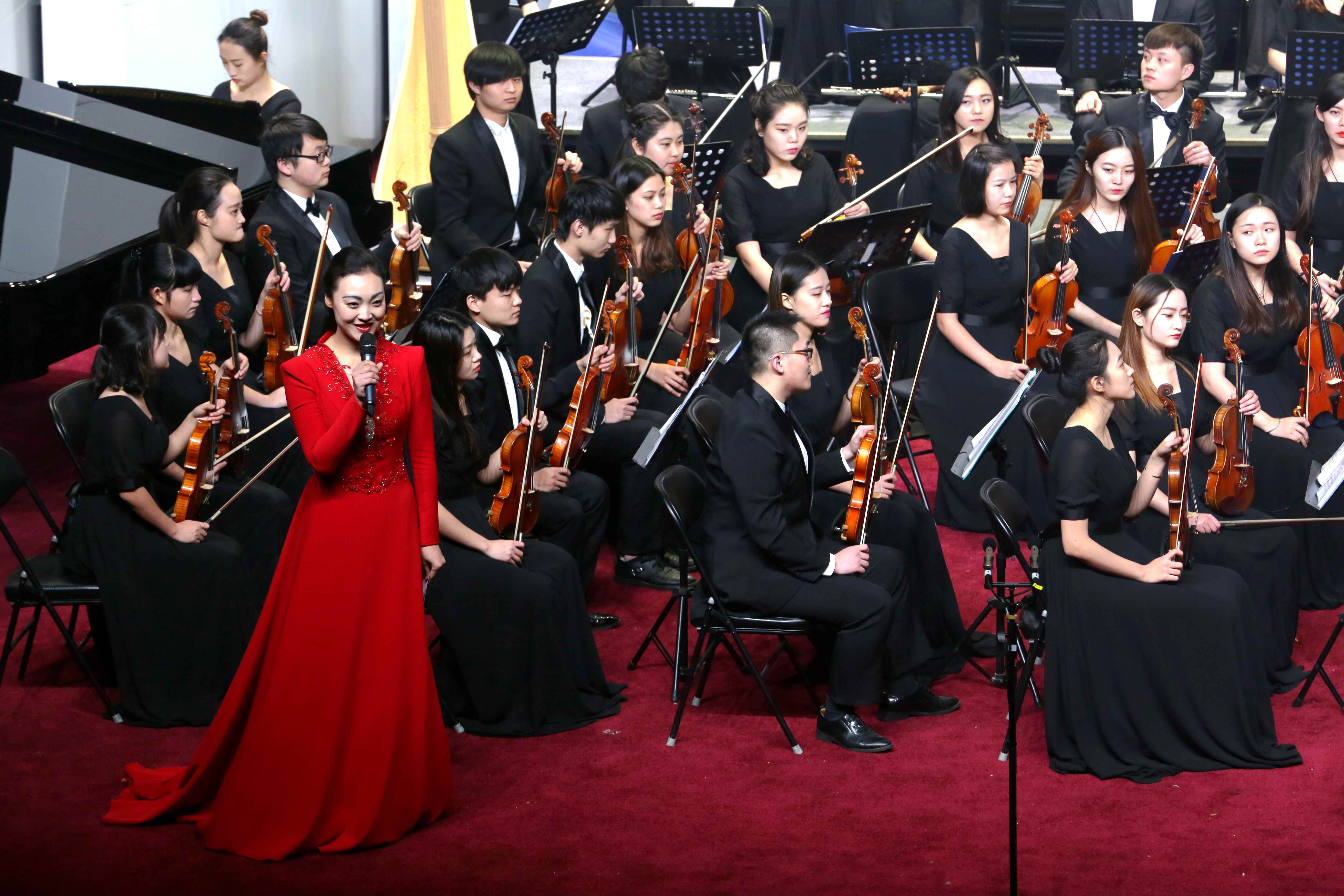 本场音乐会在国际著名指挥家孙逊教授指挥的《北京喜讯到边寨》中拉开帷幕。音乐会作品均为世界经典交响曲目,由音乐学院交响乐团独立演奏,音乐学院赵晓林老师和孙逊教授联袂指挥。激昂澎湃的《火祭舞》、欢快爽朗的《庆典》、节奏明晰的《小快板》、温馨细腻的《浪漫曲》、大气蓬勃的《红旗颂》等交响曲目给现场观众带来精彩绝伦的视听盛宴。本场音乐会星光璀璨,高潮迭起。郑州大学音乐学院特聘外籍专家、1991年意大利维奥蒂国际钢琴比赛第一名、1996年明斯克国际钢琴比赛第一名、2012白俄罗斯“总统奖”获得者西科尔斯基•安德烈教授与交响乐团共同演绎了《第一钢琴协奏曲节选》,高超的钢琴演奏技巧、娴熟的表演,令在场的领导和观众赞不绝口;郑州大学音乐学院特聘外籍专家洛伊•伊琳娜和萨夫琴科•安德烈与交响乐团共同演绎了《唐璜》选段《让我们携手同行》,美妙的歌声、精彩的演技获得现场不断的掌声;音乐学院蒋冰冰老师与交响乐团共同演绎的小提琴独奏《流浪者之歌》、张森老师的《卡门-斗牛士之歌》、李丹老师的《图兰朵-今夜无人入睡》也令在场的观众耳目一新,拍手叫好。最后,音乐会在孙逊教授指挥的经典作品《拉德斯基进行曲》中落下帷幕。音乐会现场座无虚席,氛围浓烈!