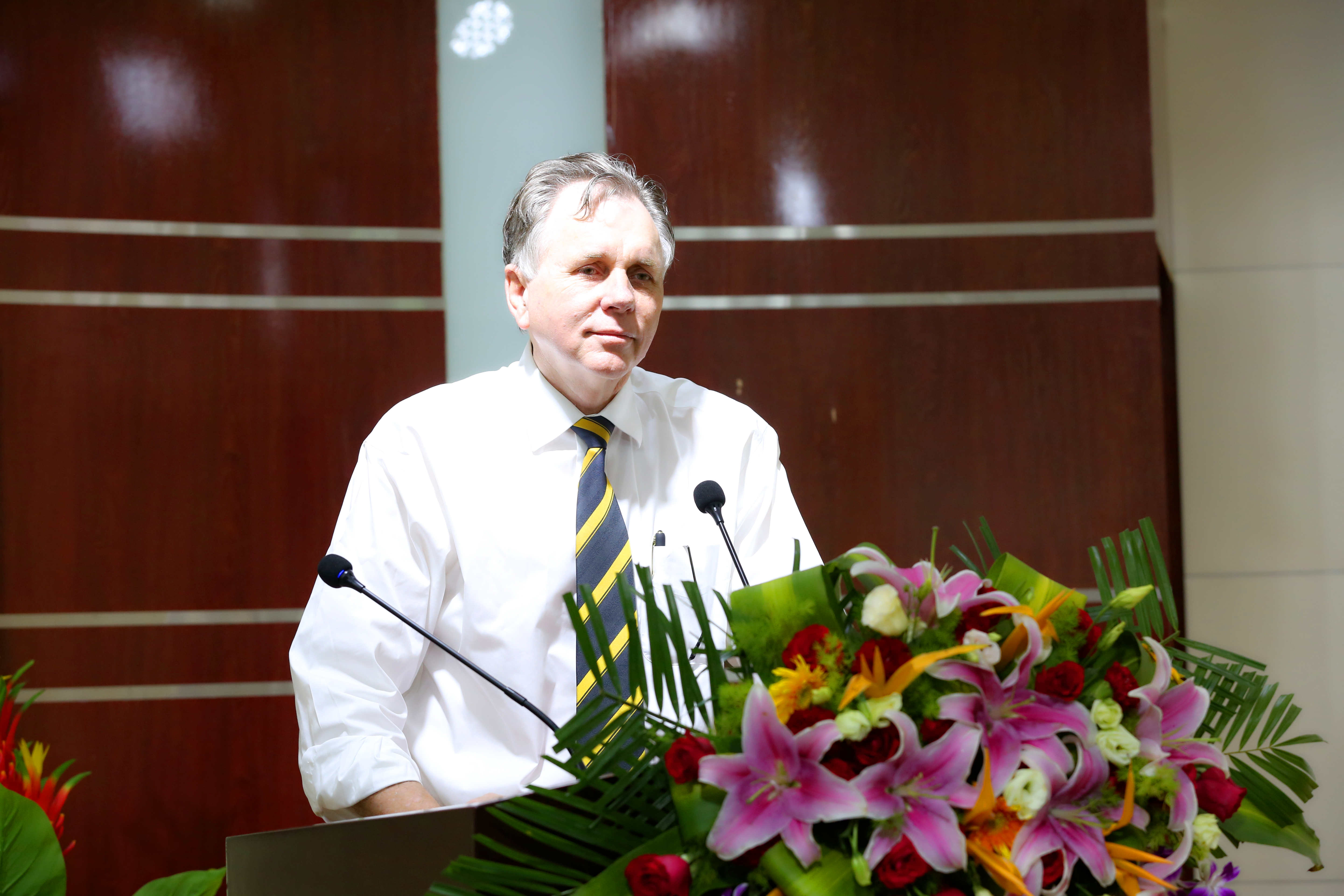 校长刘炯天院士致辞。刘校长对“郑州大学马歇尔医学研究中心”和“郑州大学马歇尔医院”的成立表示祝贺,并详细介绍了学校以及五附院与巴里·马歇尔教授进行交流、开展合作的历程。他表示,学校对双方的合作高度重视,将给予全方位支持。希望双方能够切实加强务实合作,将国外先进的科研和管理理念引入到郑州大学,共同努力建成高水平的国际联合研究中心,引领全省乃至全国幽门螺杆菌的临床科研水平与国际接轨,争取早日在消化系统等相关领域取得更加丰硕的科研成果。希望五附院能够以马歇尔教授合作为契机,履行好大学附属医院的职责,努力在我省乃至全国形成影响力,为学校医学学科发展、创建“双一流”大学贡献力量,为广大百姓健康保健事业保驾护航。