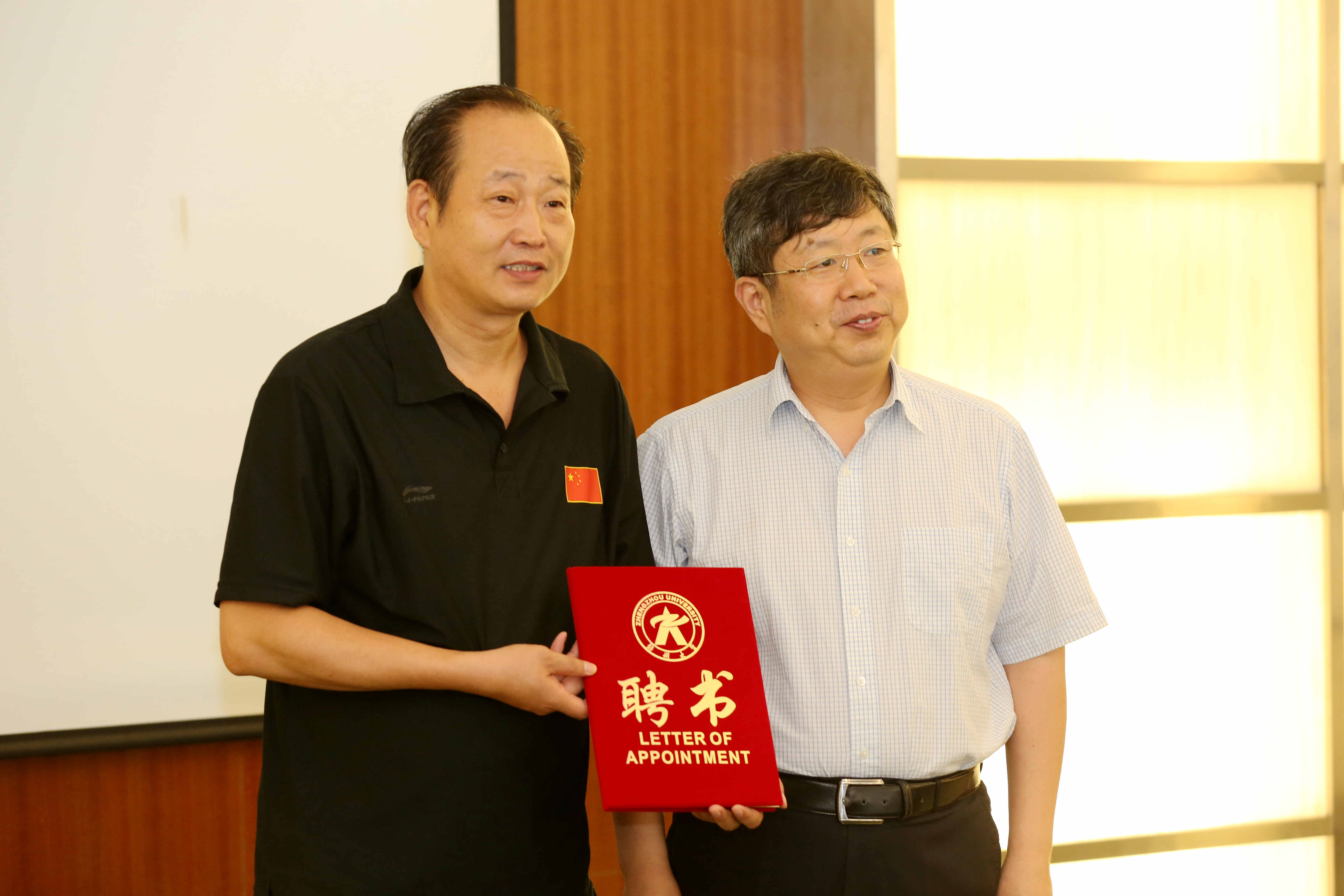 学校决定聘任荷球国家队教练马襄城老师为教授。校长刘炯天院士为马襄城老师颁发了郑州大学教授聘书。
