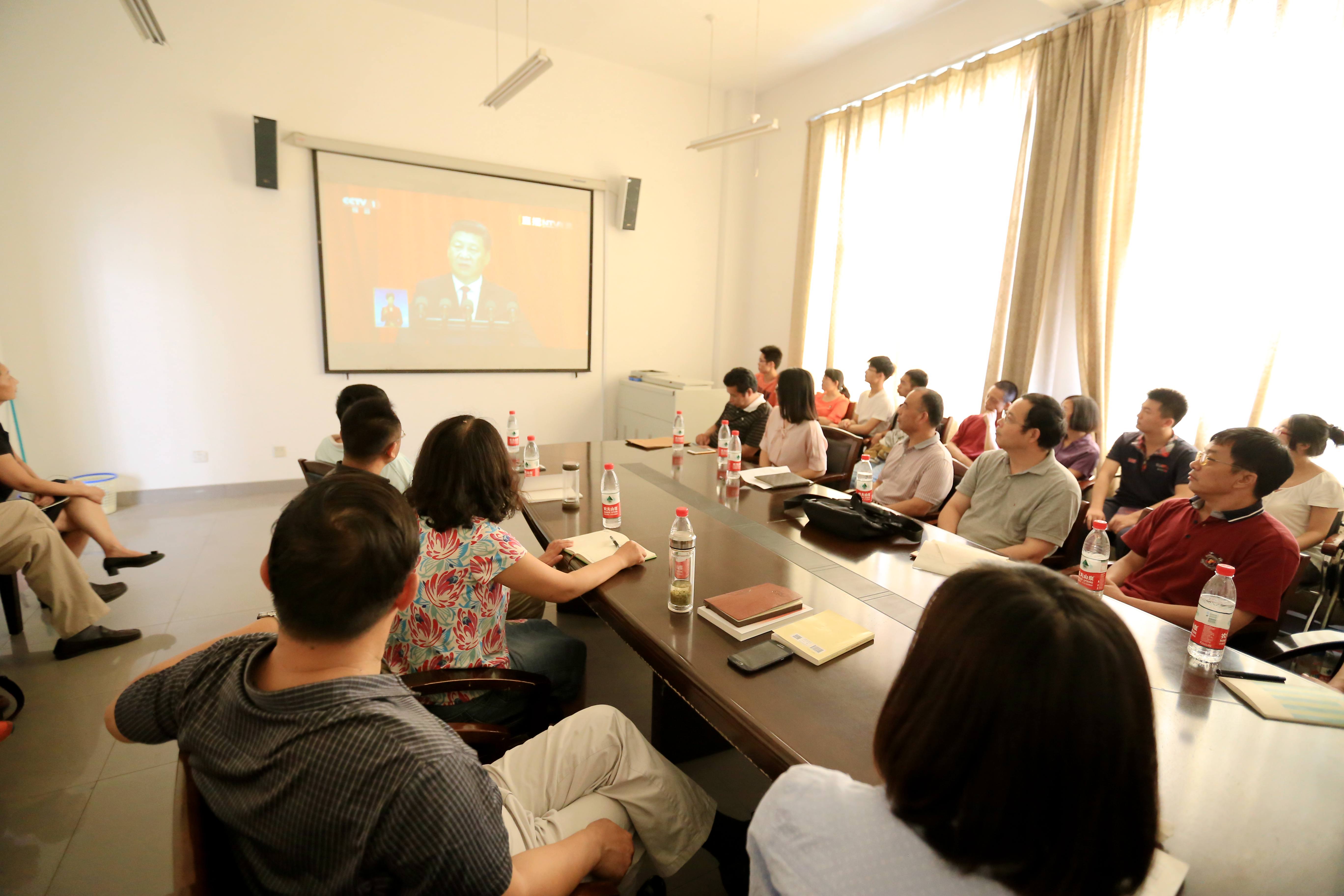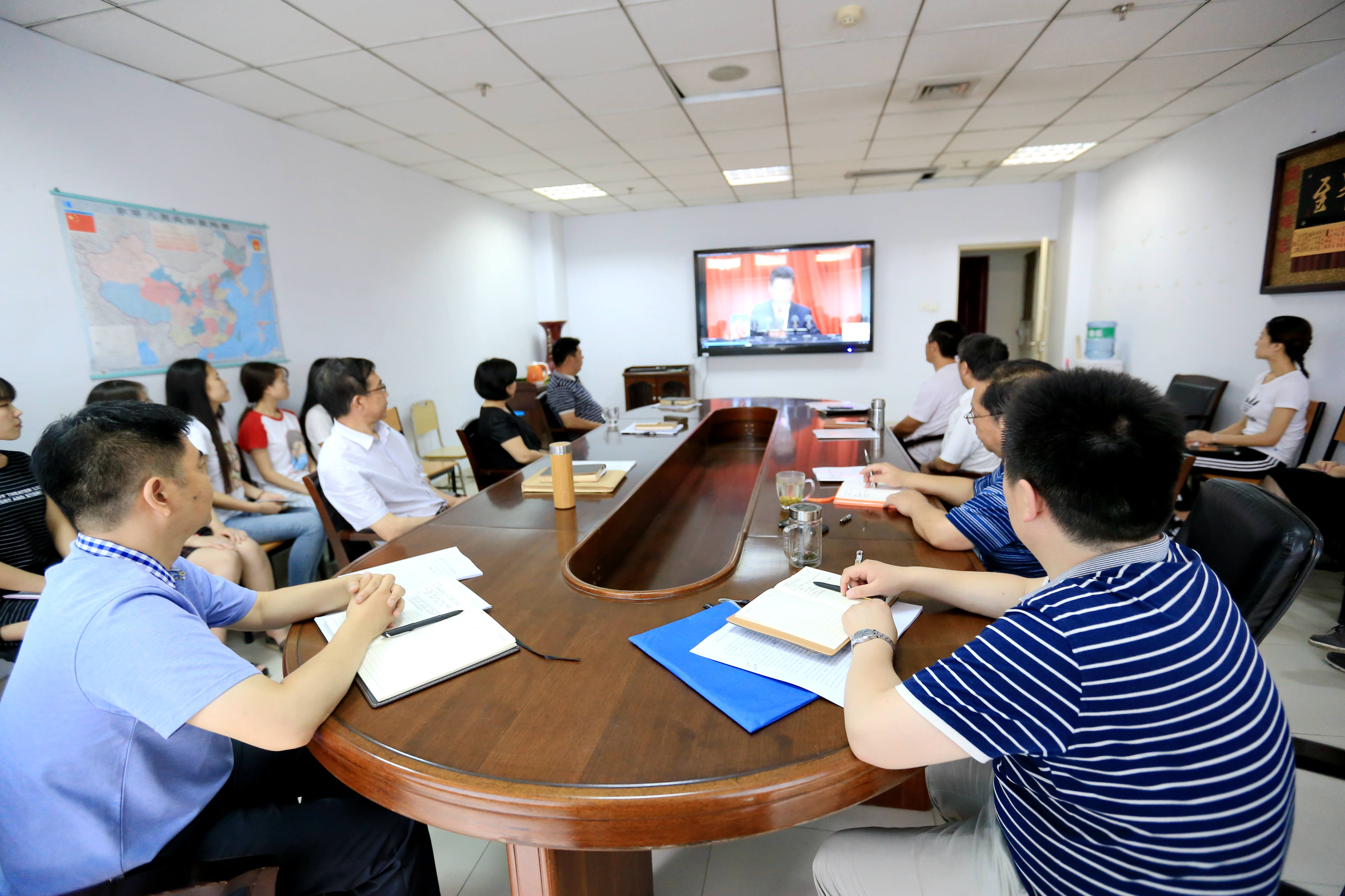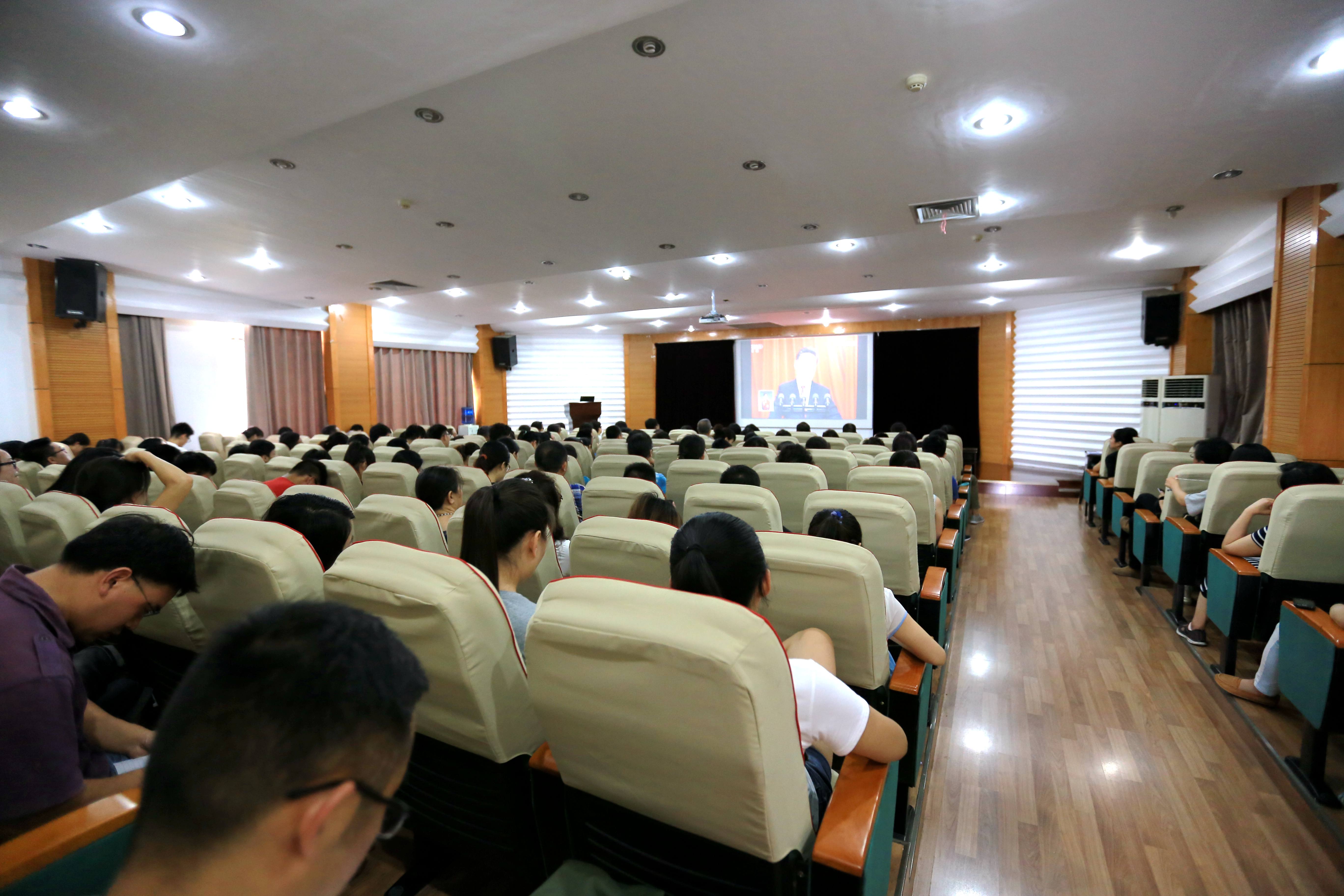 校领导与机关党员干部职工在综合管理中心第二报告厅收听收看大会