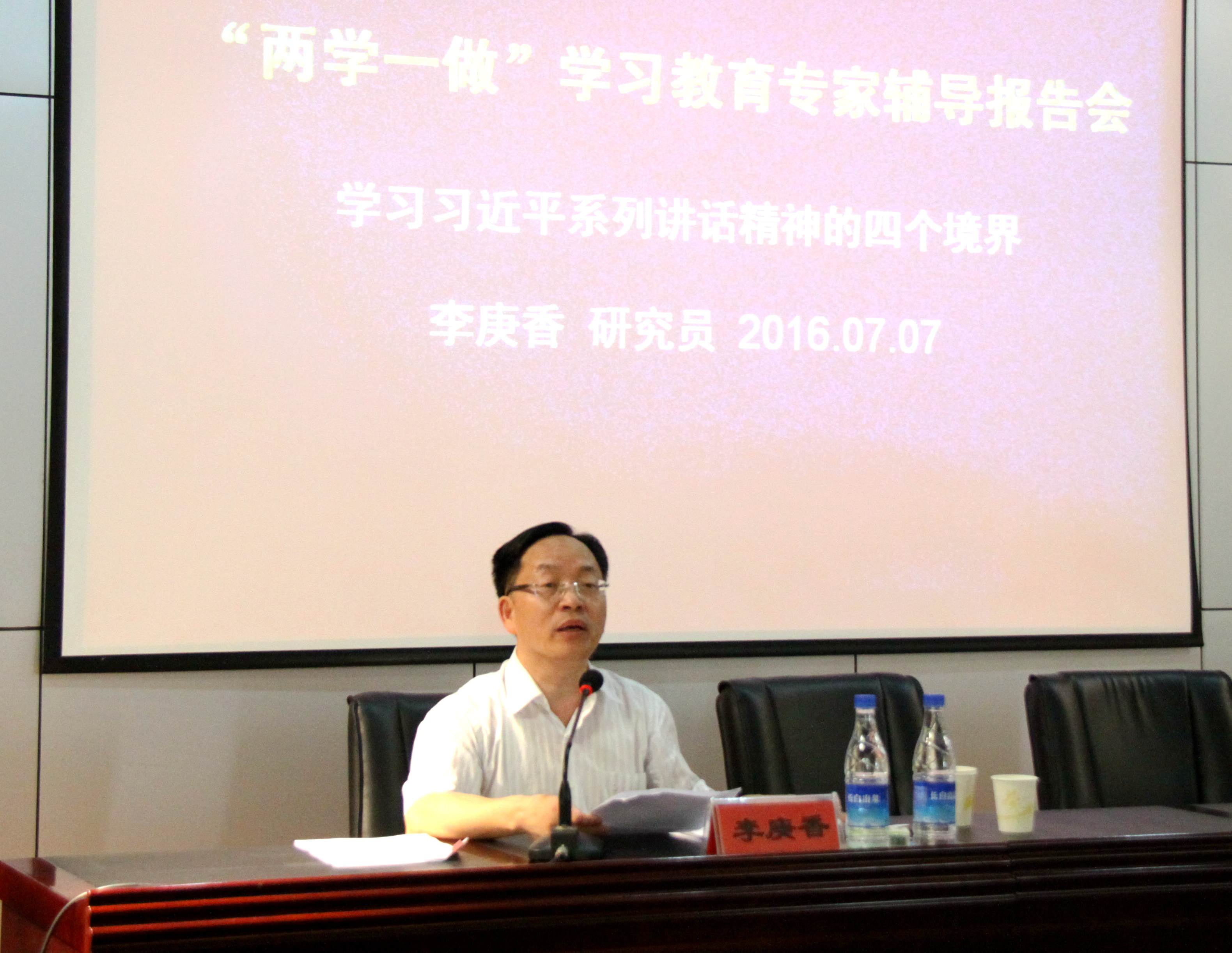 在辅导报告中,李庚香主席回顾了“两学一做”开展的背景,紧扣“两学一做”的内容,通过深入浅出的讲解,引导大家做一名政治合格、纪律合格、道德合格、能够发挥作用的合格党员。结合自身的学术研究和教育学习,他指出,学习习近平总书记系列重要讲话需要做到四个境界:一是要学明白,学习习近平总书记治国理政的新理念、新思想、新战略。二是要想明白,要树立站位全局、联系实际、创新思维的意识,培养通过现象看透本质的能力。三是要讲明白,要培养能够讲全、讲准、讲活、讲到群众的心里去、讲出彩的能力,做一个优秀的传播者。四是要做明白,要能够立足实际做,按照规律做,顺从民意做,注重实际做,切实提高执行力。