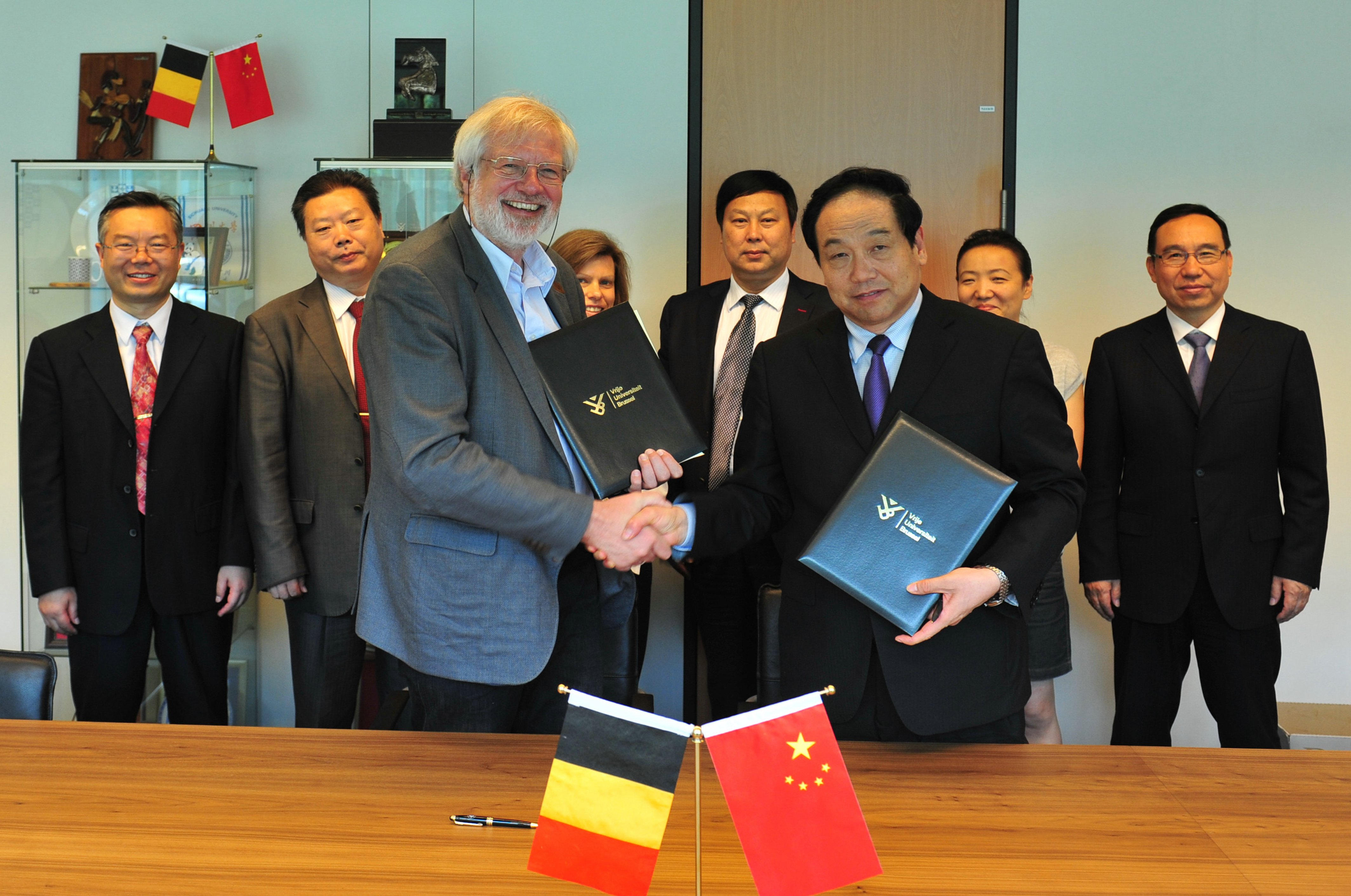 牛书记代表我校与比利时布鲁塞尔自由大学签署合作协议
