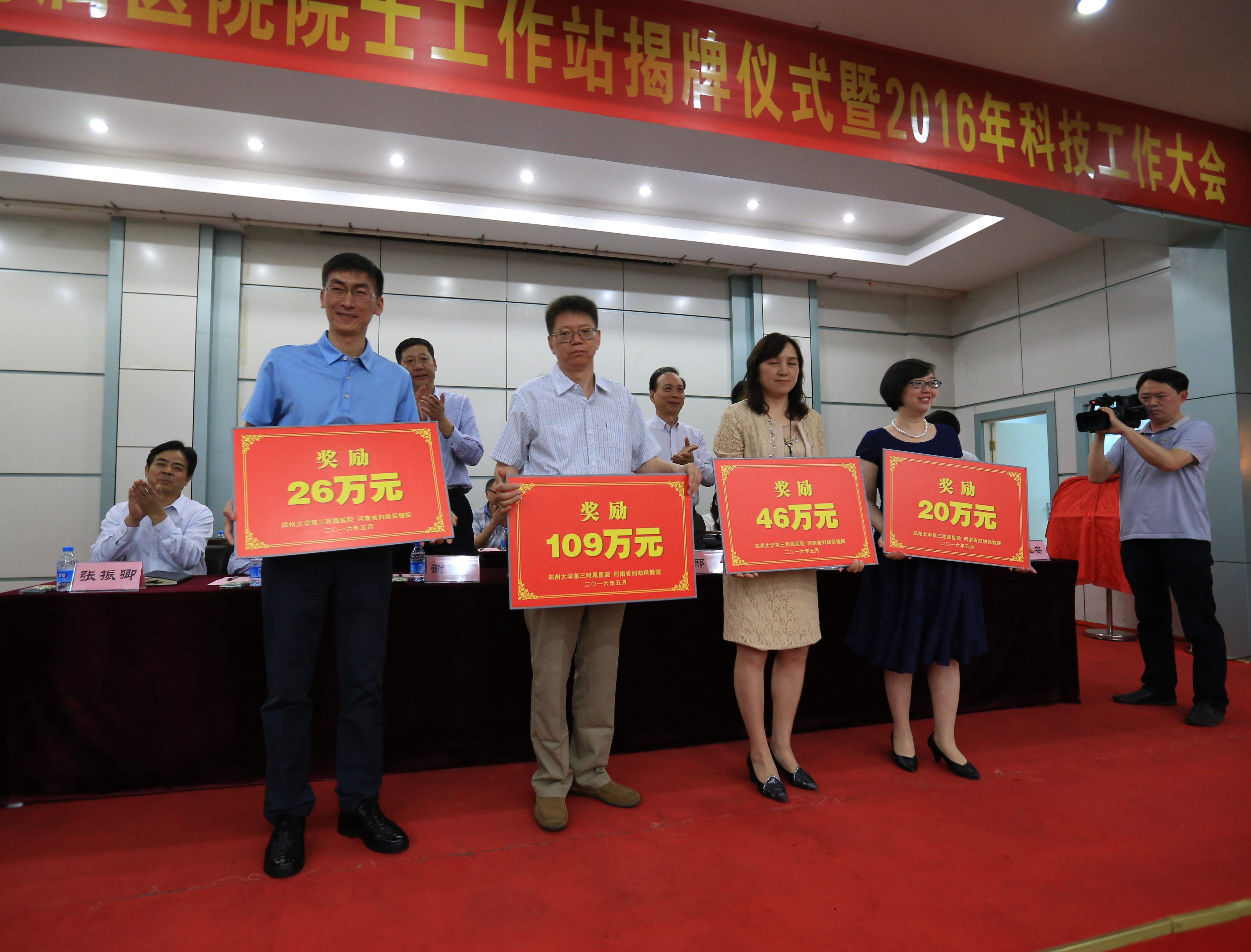 三附院院长张小安做了题为《创新驱动发展 全面开启医院科学研究新征程》的医院科技工作报告,对近三年来医院科研工作成就进行了全面总结。院党委书记张振卿宣读了《关于表彰2013-2015年度科技创新工作先进个人的决定》,对朱长连等225名国家自然科学基金、省级成果奖、地厅级成果奖获得者等先进个人进行了表彰。获奖代表张琳琳在会上发言。