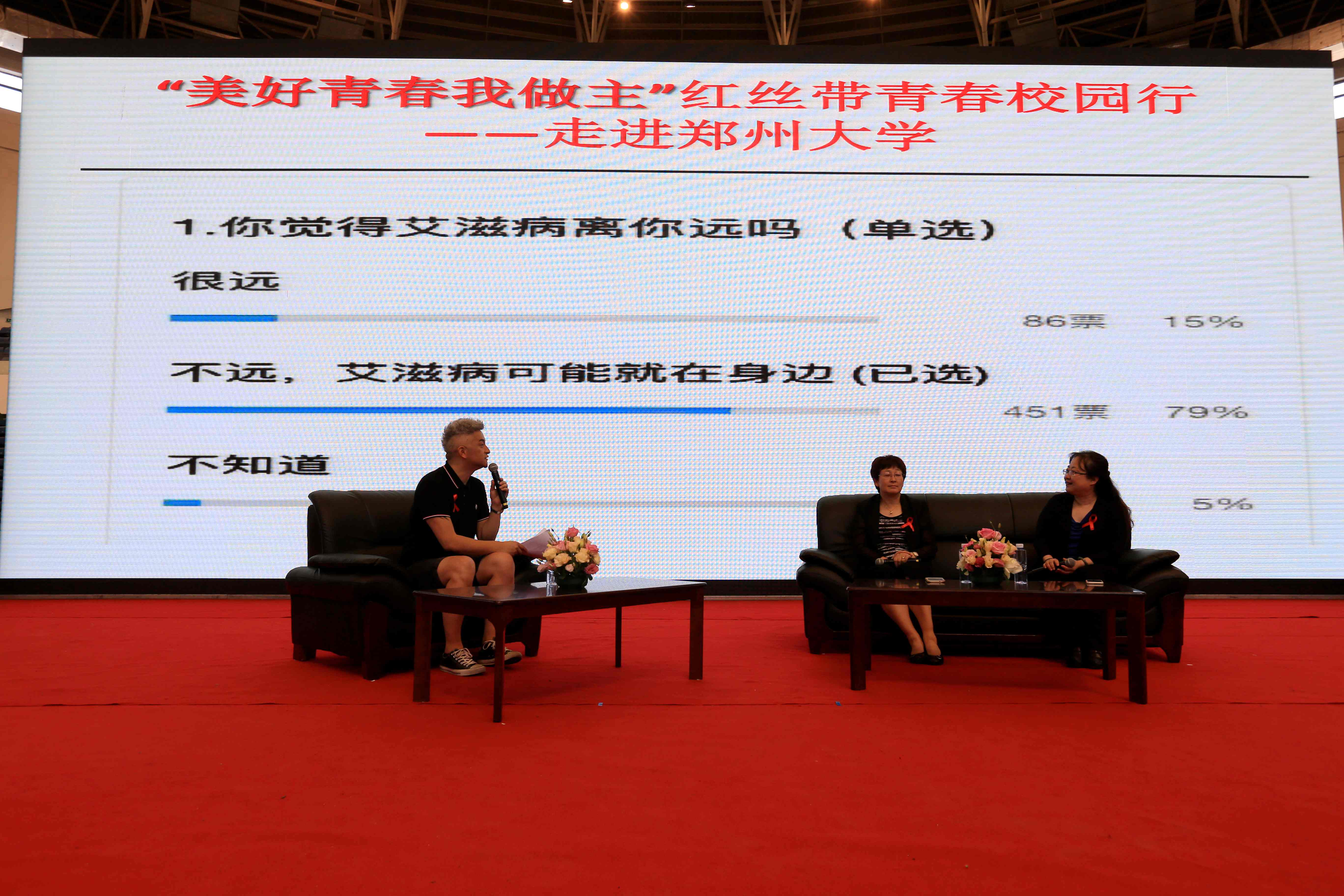 中国疾病预防控制中心王璐教授、北京地坛医院赵红心教授和红丝带健康大使吉杰与师生进行访谈对话