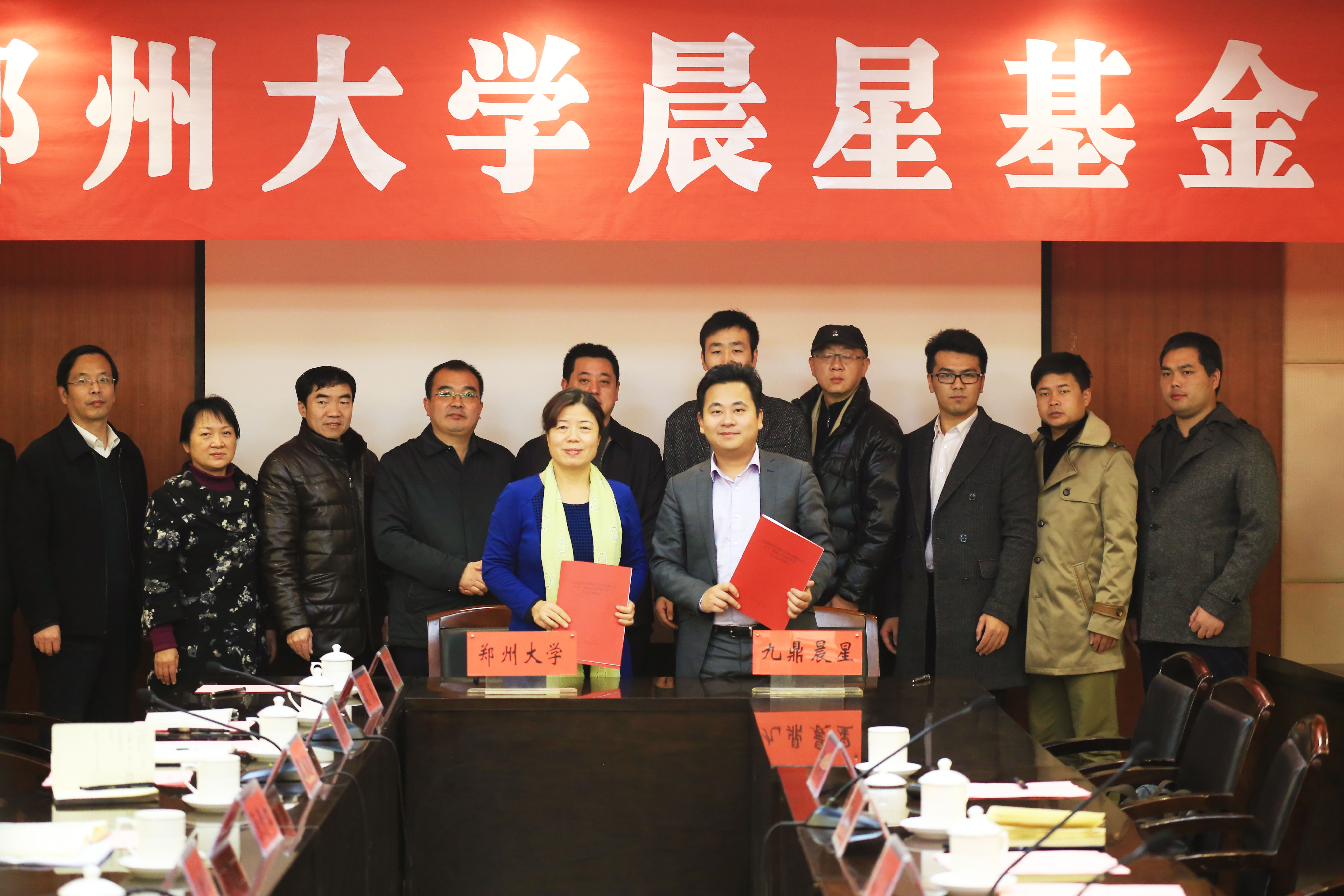 12月9日,郑州大学举行九鼎投资晨星基金签约仪式。校长刘炯天院士、副校长张倩红、九鼎投资晨星成长计划首席执行官沈冲、副总裁李艳领出席签约仪式,相关职能部门和院系负责同志,以及学生代表参加签约仪式。