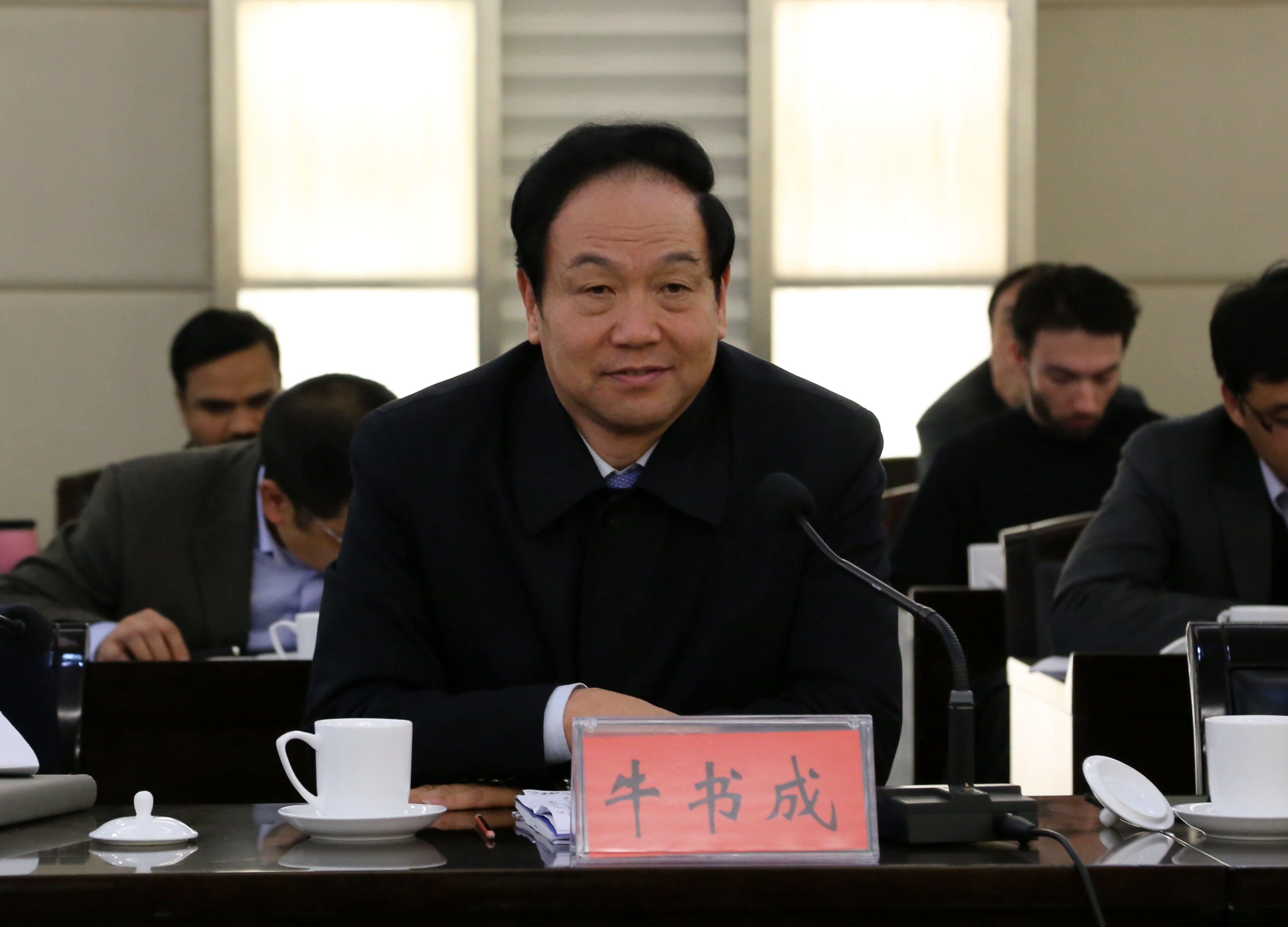 汇报会上,牛书成书记代表学校对夏鸣九副局长莅临我校视察指导表示热烈欢迎,对国家外专局长期以来对学校建设和发展的关心支持和帮助表示衷心感谢。