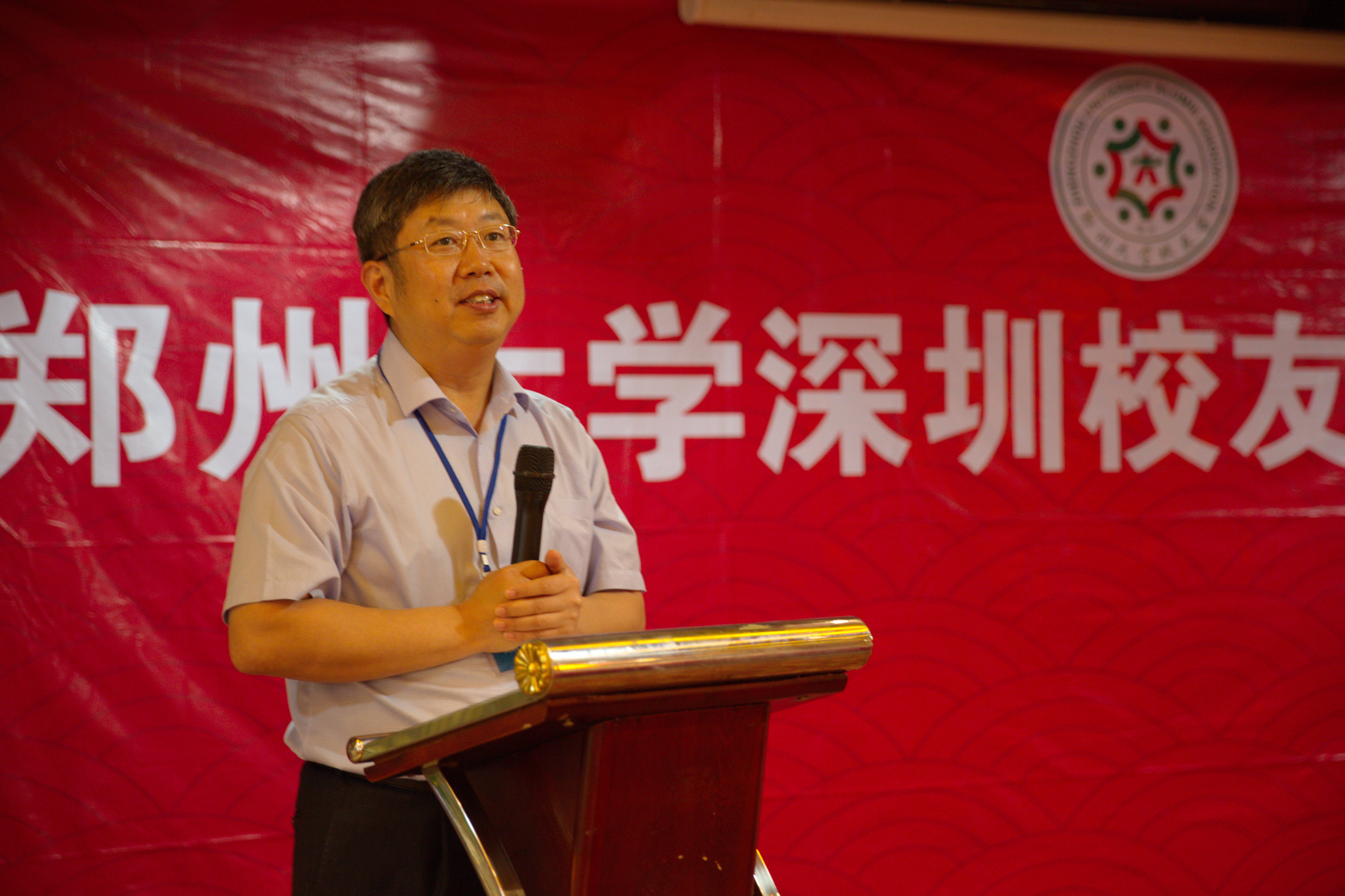 校长刘炯天院士题词:“筑校友联谊之平台,架深豫畅通之桥梁”,祝贺郑州大学深圳校友会成立,并发表了热情洋溢的致辞。他向全体在深圳的郑大校友表示亲切慰问,向为校友会的筹备和成立付出辛勤努力的各位校友表示衷心感谢。他说,校友是母校的名片,更是母校宝贵的财富。郑州大学有近50万校友遍布海内外,大家秉承郑大人的精神品格,自信开放、严谨执着、开拓创新,在不同领域、不同岗位做出了积极贡献,铸就了响亮的郑大品牌。他从“文化惟一”、“地方高水平综合性大学之一”、“规模大”三方面向与会校友介绍了学校的发展现状。他介绍说,合校15年来学校完成了综合性大学的布局。“学科之特色”和“治理之现代”是当下和未来学校努力的方向。郑大将着力推进内涵建设,打造优势特色学科和一流学科,构建科研创新与创新驱动发展体系;实施综合改革,构建现代治理体系,努力把郑州大学建设成为中部地区的人才高地、科研基地和交流合作中心,成为具有区域影响力的综合性研究型大学。