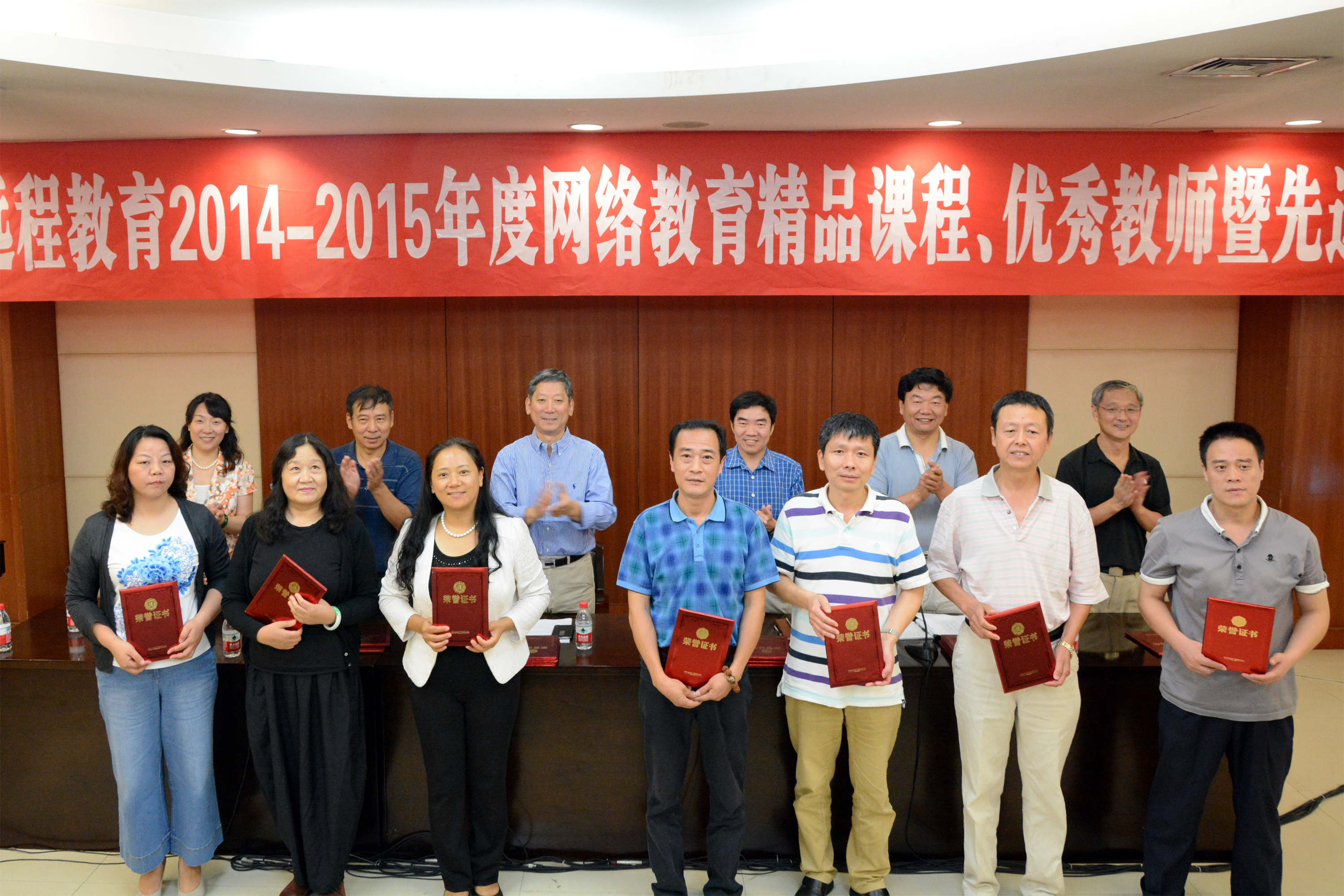 教务处处长王忠勇宣读了《郑州大学关于表彰2014-2015年度现代远程教育优秀教师与教学管理先进个人的决定》、《郑州大学关于公布“2015年度校级网络教育精品课程”名单的通知》等表彰文件。与会领导为37门校级精品课程获奖者、44位优秀教师和18位教学管理先进个人颁发了荣誉证书。优秀教师代表、教育学院王献玲教授,精品课程代表、机械学院王立新教授,先进个人代表、药学院阿有梅副院长先后进行了发言,重点介绍了他们在网络教学与教学管理方面的经验和心得。
