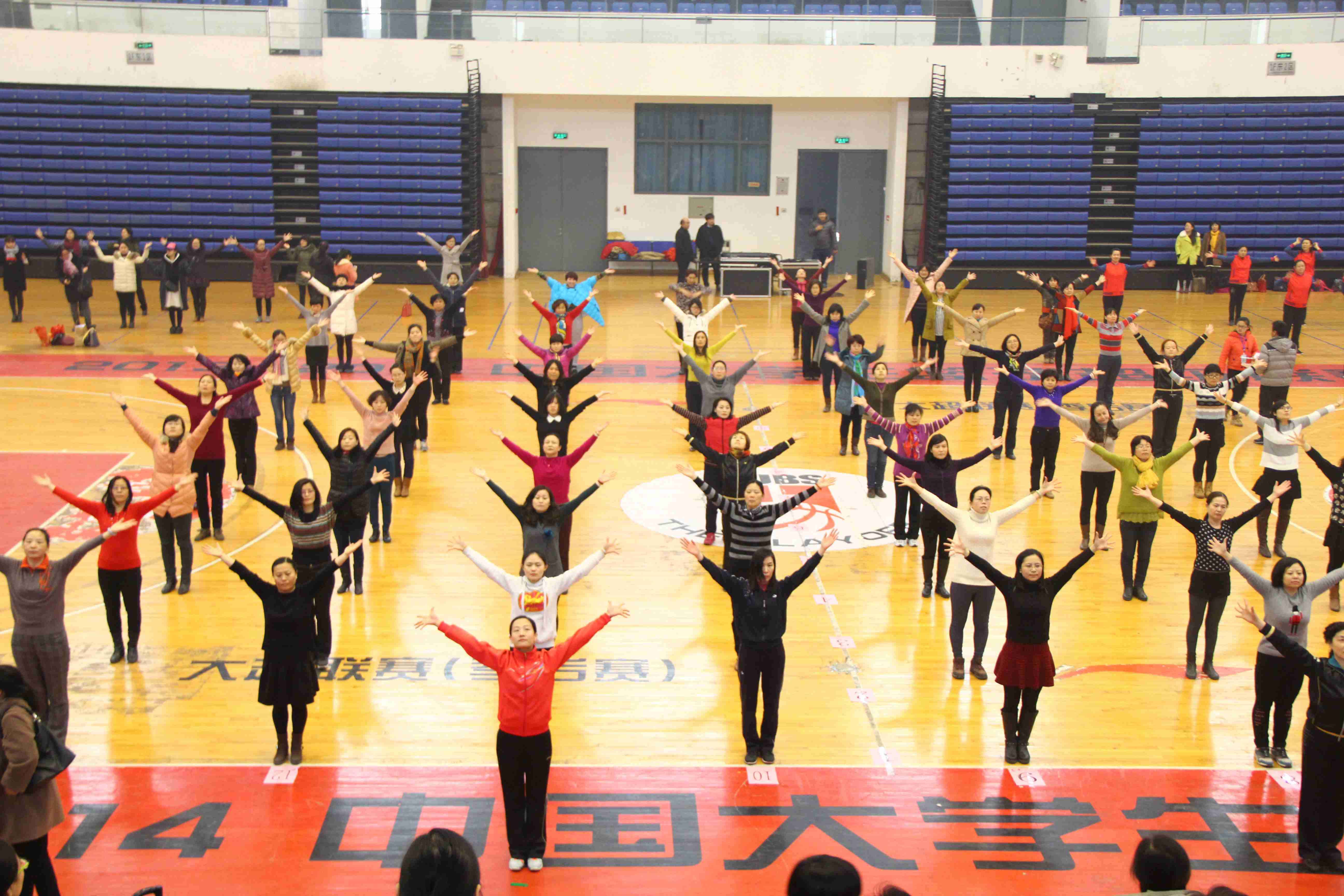 为全面落实《全民健身计划纲要》精神,深入开展阳光体育促健康系列活动,陶冶情操、增强体质、活跃校园文化,校工会本学期在女教职工中开展了“快乐健身舞”推广普及活动。1月15日,校工会在新校区中心体育馆进行了“快乐健身舞”展示验收活动,来自50多个基层工会的700余名女教职工以时尚优美的动作、整齐划一的表演展示了我校女教职工健康美丽、与时俱进、昂扬向上的精神风貌。