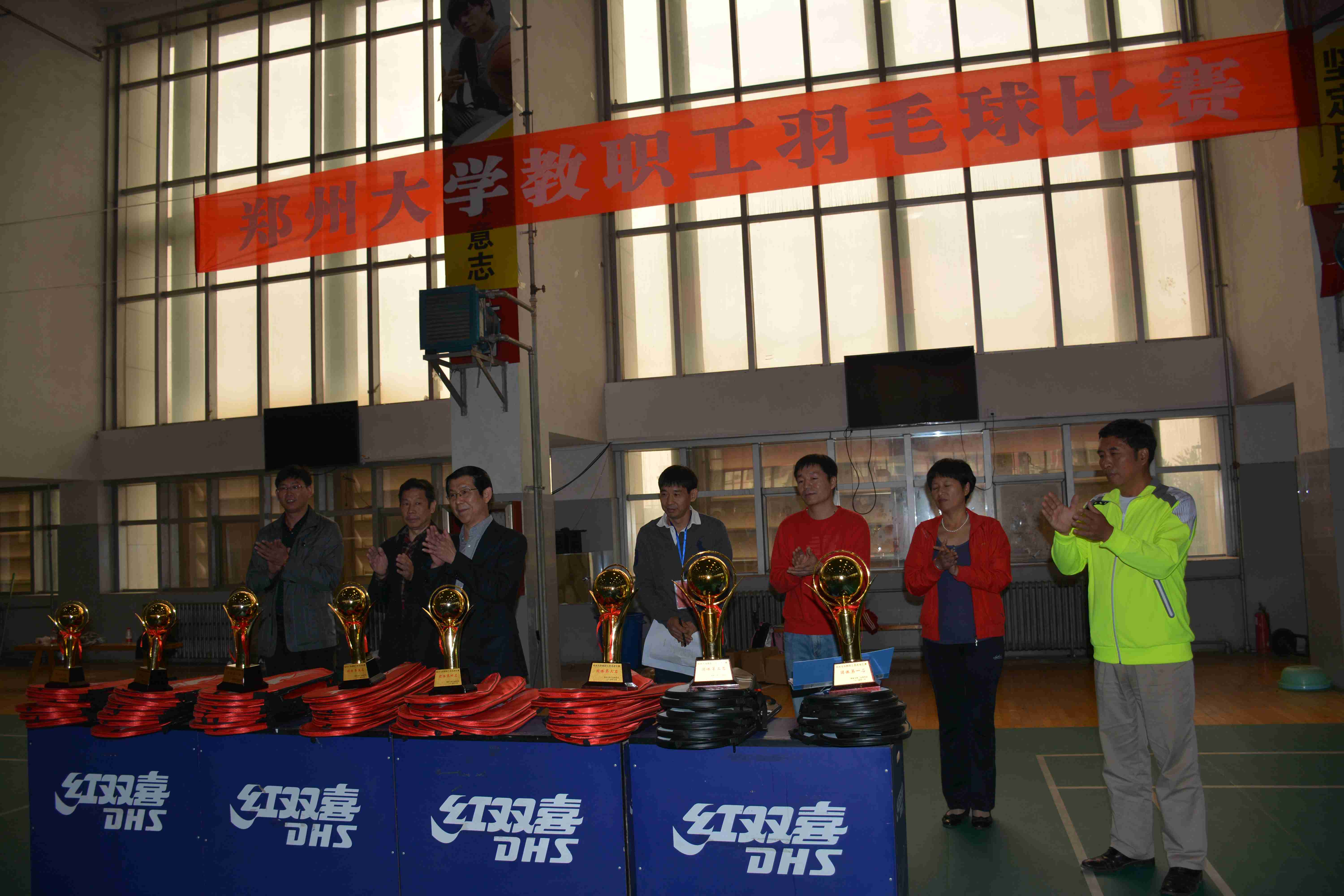 近日,郑州大学2014年教职工羽毛球赛在新校区南体育馆落下帷幕。共有39个基层工会的300多名运动员参加了比赛,经过108场次的激烈角逐,机关、新区建设办、电气工程学院、机械工程学院、第一附属医院、护理学院、校医院、药学院等八个单位获得第一至第八名。