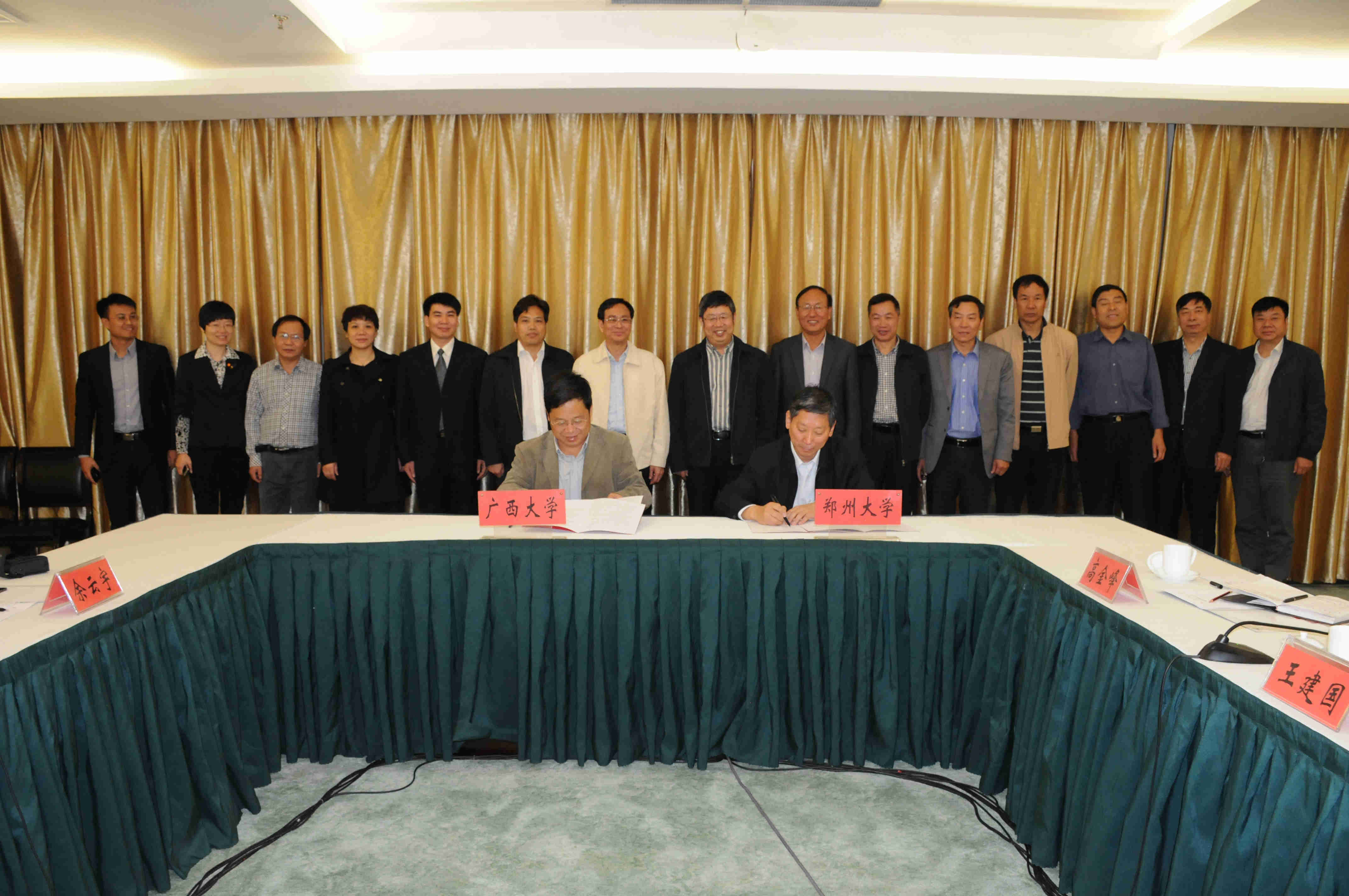 在签约仪式上,校长刘炯天院士从人才培养、科技创新、社会服务和文化传承与创新等方面向来宾介绍了郑州大学的基本情况,并重点介绍了学校“一省一校”的建设思路及综合改革的基本设想。刘校长希望双方发挥各自优势,在人才培养方面开展务实性的合作,把双方的合作做好做实。广西大学校长赵艳林介绍了广西大学的基本情况,就双方今后的合作方式和合作内容提出了建议。
