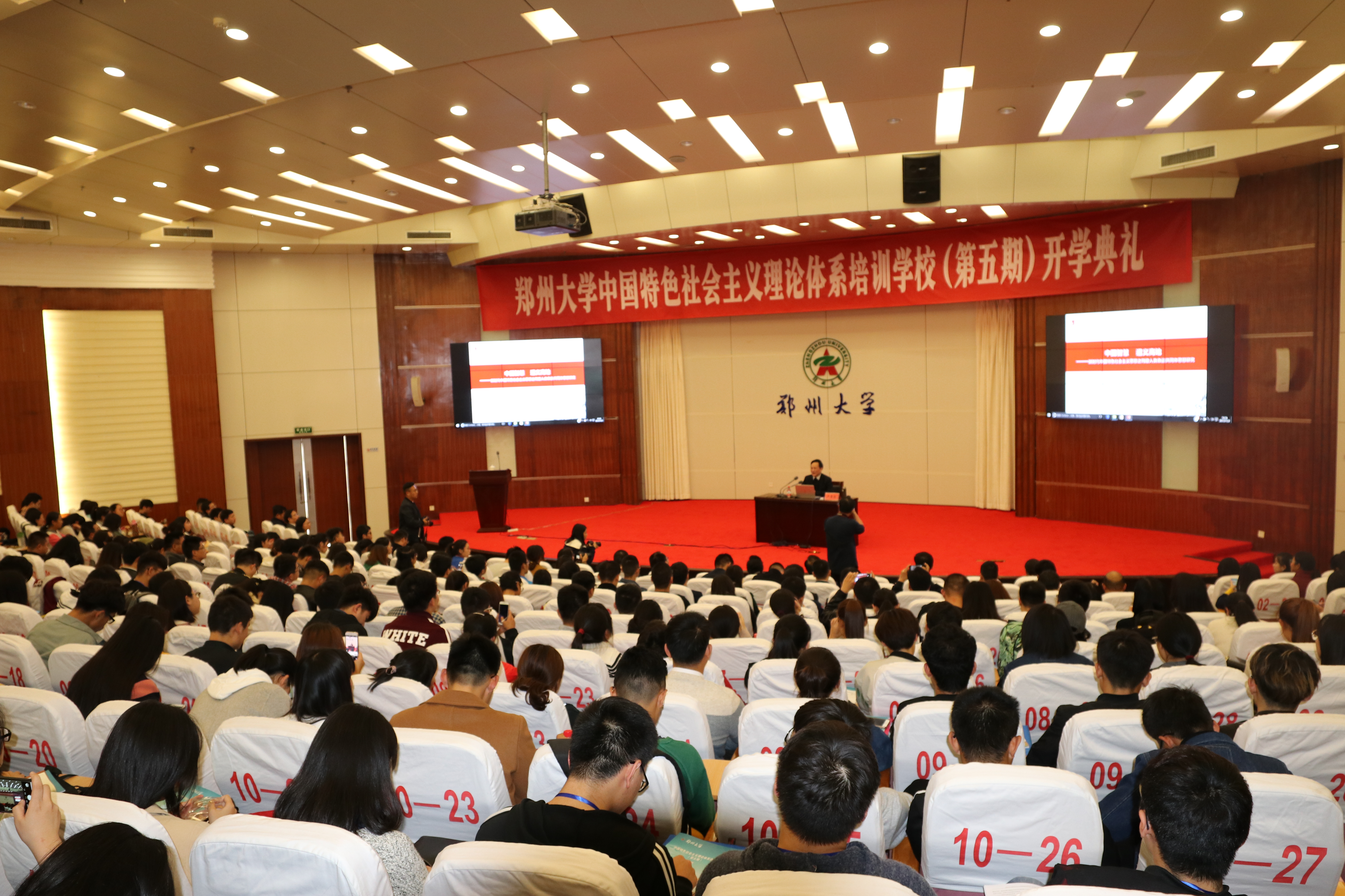 11月2日下午,受郑州大学第五期中国特色社会主义理论体系培训学校邀请,西安交通大学马克思主义学院教授、博士生导师卢黎歌在主校区综合管理中心第一报告厅作题为《中国智慧 道义高地——新时代中国特色社会主义思想之构建人类命运共同体思想研究》的专题报告。校党委副书记贾少鑫、党委学生工作部负责同志、院系主管学生工作的副书记(副院长)、专兼职辅导员、培训学校学生共400余人参加了报告会。