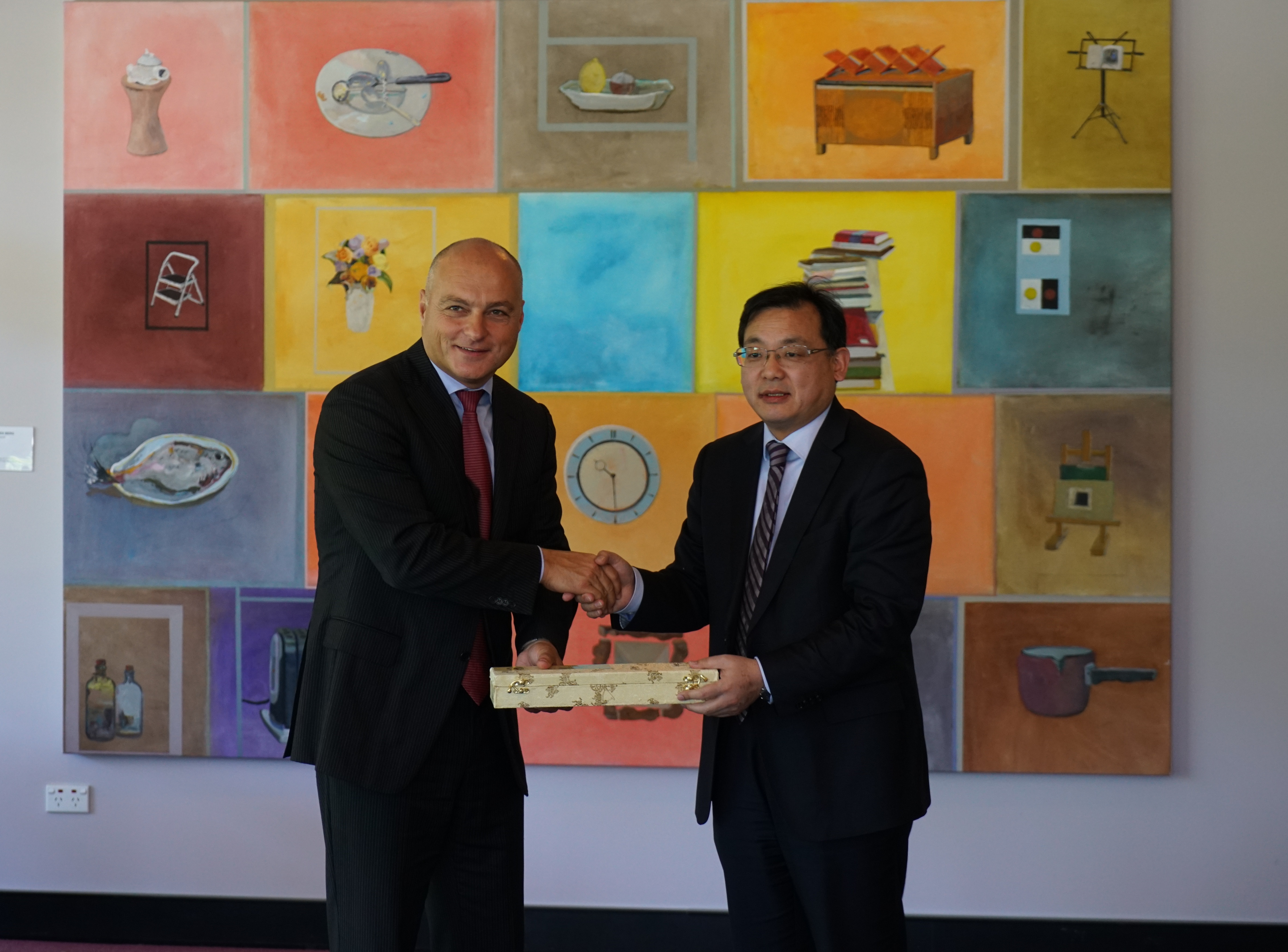 韩国河副校长与伍伦贡大学副校长Alex•Frino交换礼物