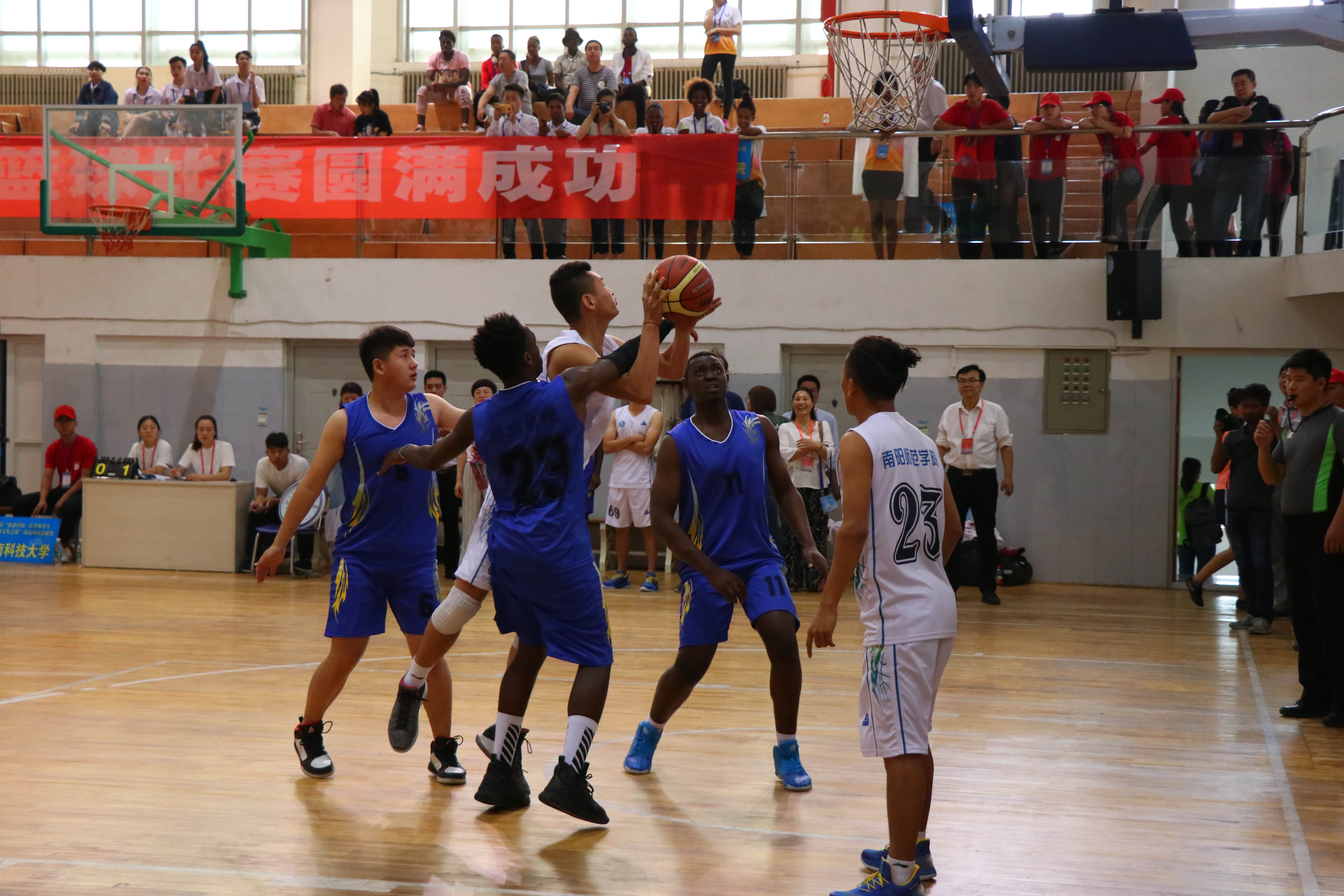 经过激烈角逐,郑州大学留学生代表队发挥出色,在3人篮球赛、5公里定向越野和体育艺术展示三个比赛项目中均取得第一名的好成绩。最终,郑州大学、河南理工大学、河南工业大学代表队分获总成绩前三名,并将代表河南省参加西北赛区的比赛。